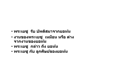 ู • พระเยซ รับ บัพติสมาจากยอห์น ู • งานของพระเยซ เหมือน หรือ ต่าง จากงานของยอห์น • พระเยซ กล่าว ถึง ยอห์น ู • พระเยซ กับ ลูกศิษย์ของยอห์น ู