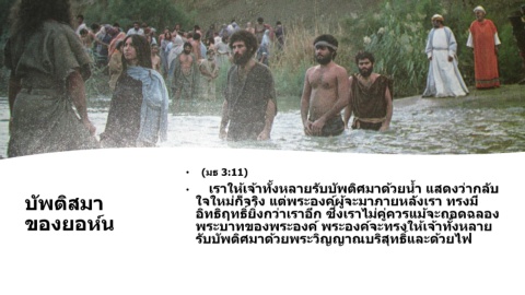 • เรา ให้ เจ้า ทั้ง หลาย รับ บัพติศมา ด้วย น้า แสดง ว่า กลับ