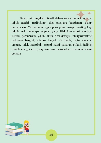 pernapasan. Memelihara organ pernapasan sangat penting bagi