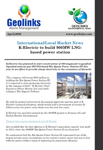 K-Electric to build 900MW LNG-