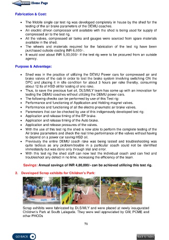 Children’s Park at South Lalaguda. They were well appreciated by GM, PCME and