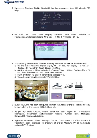 3. Hyderabad Division’s RailNet Bandwidth has been enhanced from 395 Mbps to 700