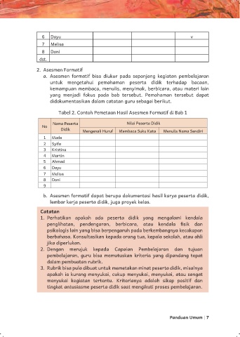 Tabel 2. Contoh Pemetaan Hasil Asesmen Formatif di Bab 1