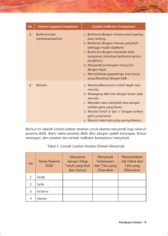 Tabel 4. Contoh Lembar Amatan Elemen Menyimak