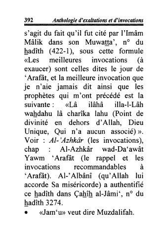 ‘Arafât). Al-’Albânî (qu’Allah lui