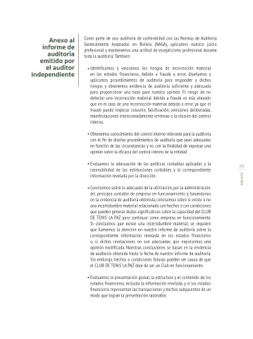 informe de Generalmente Aceptadas en Bolivia (NAGA), aplicamos nuestro juicio