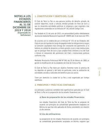 AL 31 DE DICIEMBRE DE 2019 Y 2018 FINANCIEROS El Club de Tenis La Paz es una persona jurídica de derecho privado, de