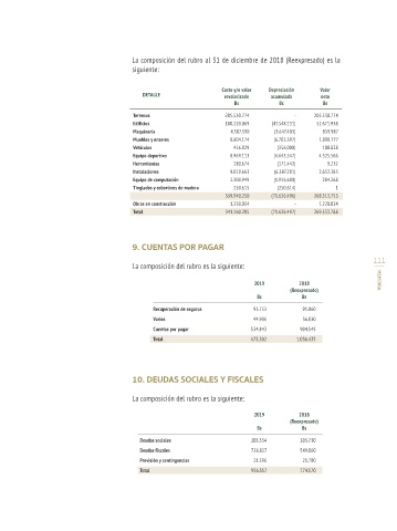 Muebles y enseres 8.248.654 (6.303.533) 1.945.121 10. DEUDAS SOCIALES Y FISCALES