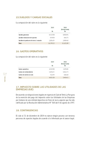 15.SUELDOS Y CARGAS SOCIALES 19. HECHOS POSTERIORES