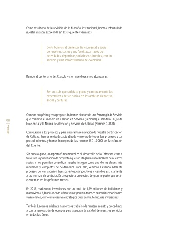 Rumbo al centenario del Club, la visión que deseamos alcanzar es: desarrollo de un sentido de pertenencia de las distintas escuelas deportivas,