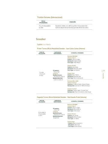 MEMORIA de 2019 Modalidad Snooker: Campeón: Hugo Tejerina MEMORIA