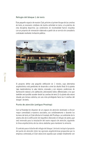 Refugio del bloque 1 de tenis los requerimientos del área, la cual deberá ser desarrollada más adelante a