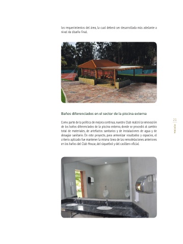 MEMORIA de los baños diferenciados de la piscina externa, donde se procedió al cambio MEMORIA