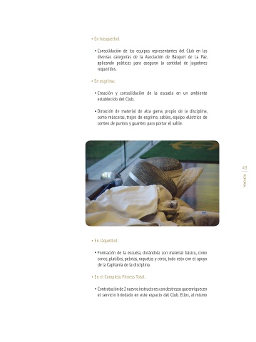 como máscaras, trajes de esgrima, sables, equipo eléctrico de