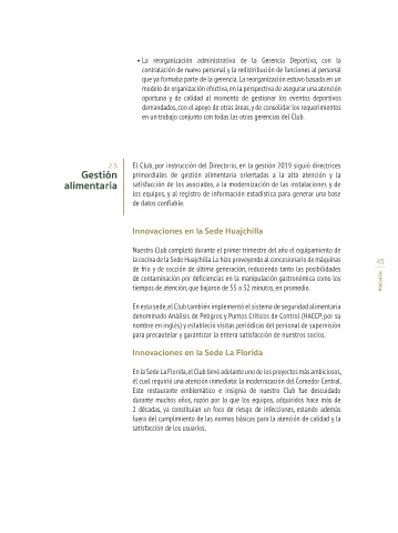 2.5 El Club, por instrucción del Directorio, en la gestión 2019 siguió directrices