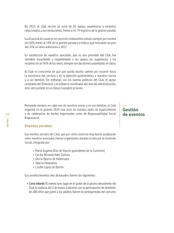48 y de celebración de fechas importantes como de Responsabilidad Social de eventos Fiesta de Carnaval: El Comedor Central y el Pub Bar abrieron sus puertas el 4 49