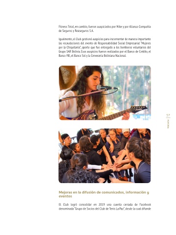 auspició todos los eventos deportivos y sociales, a excepción de la disciplina El Club logró consolidar en 2019 una cuenta cerrada de Facebook