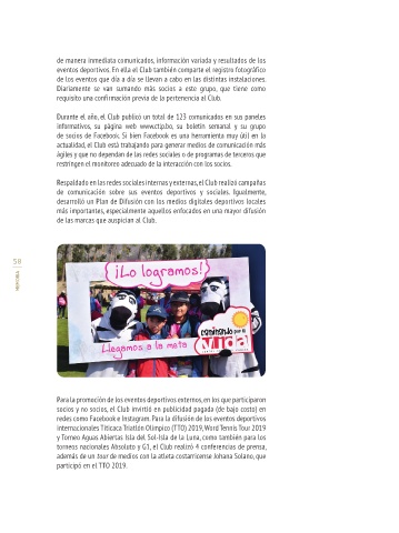 eventos deportivos. En ella el Club también comparte el registro fotográfico participación de atletas externos e internos respecto a años anteriores, y que