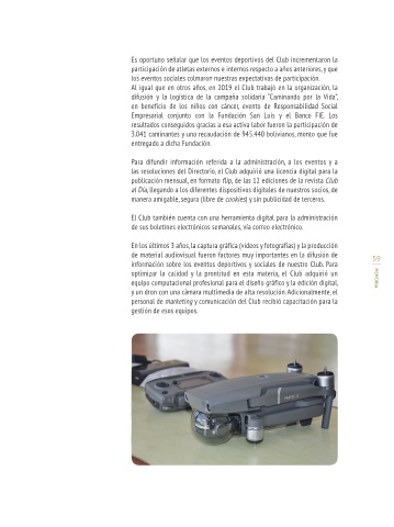 eventos deportivos. En ella el Club también comparte el registro fotográfico participación de atletas externos e internos respecto a años anteriores, y que