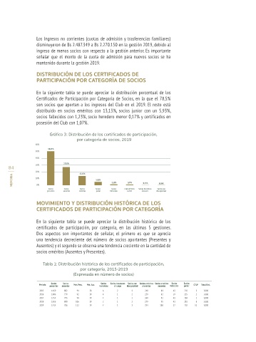 Certificados de Participación por Categoría de Socios, en la que el 78,5% en los últimos años, afectando directamente los ingresos corrientes.