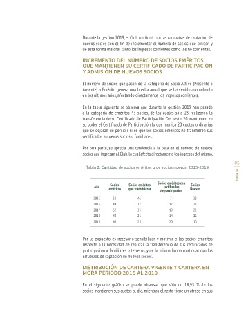 20% 13,13% Tabla 2: Cantidad de socios eméritos y de socios nuevos, 2015-2019