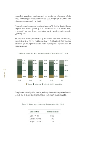 Gráfico 4: Evolución de la mora de cuotas ordinarias 2015 - 2019 Deportivos Sociales