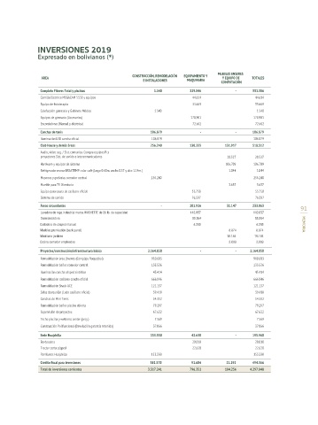 OTRAS ESTADÍSTICAS FINANCIERAS 2015-2019 INVERSIONES 2019