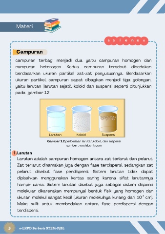 yaitu larutan (larutan sejati), koloid dan suspensi seperti ditunjukkan