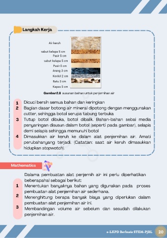 4 Dimasukkan air keruh ke dalam alat penjernihan air. Amati