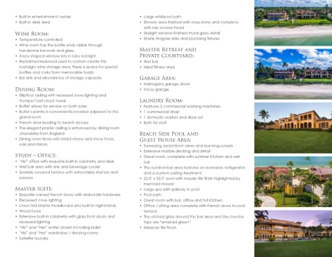 • Linen-fold Master headboard and built-in nightstands • Office / sitting area complete with French doors to pool