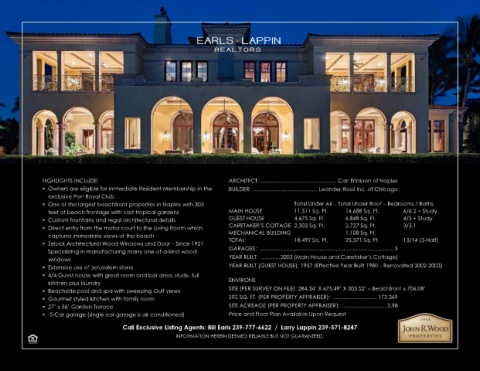 Call Exclusive Listing Agents: Bill Earls 239-777-6622 / Larry Lappin 239-571-8247