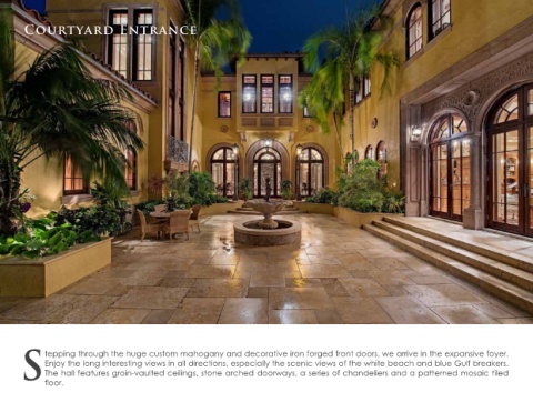 S tepping through the huge custom mahogany and decorative iron forged front doors, we arrive in the expansive foyer.