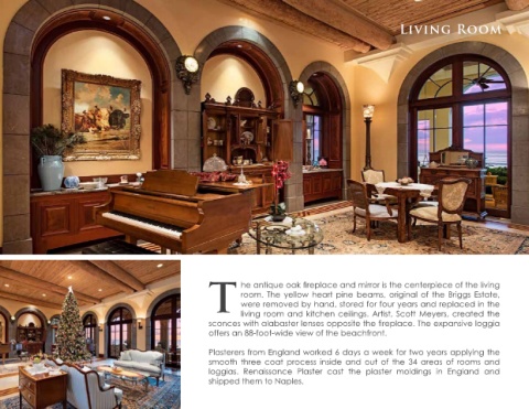 sconces with alabaster lenses opposite the fireplace. The expansive loggia