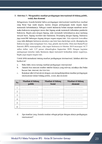 3. Aktivitas 3 : Menganalisis manfaat perdagangan internasional di bidang politik,