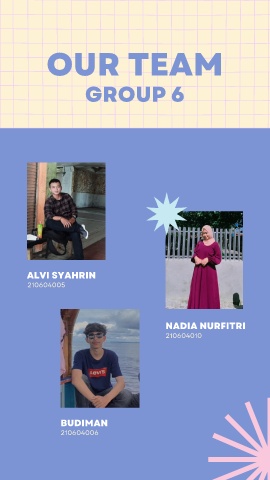 OUR TEAM GROUP 6 ALVI SYAHRIN 210604005 NADIA NURFITRI 210604010 BUDIMAN 210604006