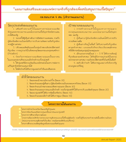 “แผนงานส่งเสริมและเผยแพร่ความจริงที่ถูกต้องเพื่อสนับสนุนการแก้ไขปัญหา”