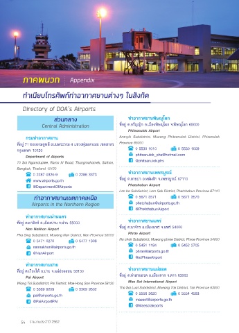 ท�เนียบโทรศัพท์ท่าอากาศยานต่างๆ ในสังกัด