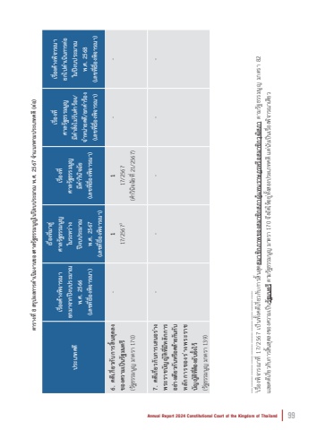 Annual Report 2024 Constitutional Court of the Kingdom of Thailand99%u0e1b%u0e23%u0e30%u0e40%u0e20%u0e17%u0e04%u0e14%u0e35%u0e40%u0e23%u0e37%u0e48%u0e2d%u0e07%u0e04%u0e49%u0e32%u0e07%u0e1e%u0e34%u0e08%u0e32%u0e23%u0e13%u0e32%u0e22%u0e01%u0e21%u0e32%u0e08%u0e32%u0e01%u0e1b%u0e35%u0e07%u0e1a%u0e1b%u0e23%u0e30%u0e21%u0e32%u0e13 %u0e1e.%u0e28. 2566(%u0e40%u0e25%u0e02%u0e17%u0e35%u0e48%u0e40%u0e23%u0e37%u0e48%u0e2d%u0e07%u0e1e%u0e34%u0e08%u0e32%u0e23%u0e13%u0e32)%u0e40%u0e23%u0e37%u0e48%u0e2d%u0e07%u0e17%u0e35%u0e48%u0e21%u0e32%u0e2a%u0e39%u0e48%u0e28%u0e32%u0e25%u0e23%u0e31%u0e10%u0e18%u0e23%u0e23%u0e21%u0e19%u0e39%u0e0d%u0e43%u0e19%u0e23%u0e30%u0e2b%u0e27%u0e48%u0e32%u0e07%u0e1b%u0e35%u0e07%u0e1a%u0e1b%u0e23%u0e30%u0e21%u0e32%u0e13%u0e1e.%u0e28. 2567(%u0e40%u0e25%u0e02%u0e17%u0e35%u0e48%u0e40%u0e23%u0e37%u0e48%u0e2d%u0e07%u0e1e%u0e34%u0e08%u0e32%u0e23%u0e13%u0e32)%u0e40%u0e23%u0e37%u0e48%u0e2d%u0e07%u0e17%u0e35%u0e48%u0e28%u0e32%u0e25%u0e23%u0e31%u0e10%u0e18%u0e23%u0e23%u0e21%u0e19%u0e39%u0e0d%u0e21%u0e35%u0e04%u0e33%u0e27%u0e34%u0e19%u0e34%u0e08%u0e09%u0e31%u0e22(%u0e40%u0e25%u0e02%u0e17%u0e35%u0e48%u0e40%u0e23%u0e37%u0e48%u0e2d%u0e07%u0e1e%u0e34%u0e08%u0e32%u0e23%u0e13%u0e32)%u0e40%u0e23%u0e37%u0e48%u0e2d%u0e07%u0e17%u0e35%u0e48%u0e28%u0e32%u0e25%u0e23%u0e31%u0e10%u0e18%u0e23%u0e23%u0e21%u0e19%u0e39%u0e0d%u0e21%u0e35%u0e04%u0e33%u0e2a%u0e31%u0e48%u0e07%u0e44%u0e21%u0e48%u0e23%u0e31%u0e1a%u0e04%u0e33%u0e23%u0e49%u0e2d%u0e07/%u0e08%u0e33%u0e2b%u0e19%u0e48%u0e32%u0e22%u0e04%u0e14%u0e35/%u0e22%u0e01%u0e04%u0e33%u0e23%u0e49%u0e2d%u0e07(%u0e40%u0e25%u0e02%u0e17%u0e35%u0e48%u0e40%u0e23%u0e37%u0e48%u0e2d%u0e07%u0e1e%u0e34%u0e08%u0e32%u0e23%u0e13%u0e32)%u0e40%u0e23%u0e37%u0e48%u0e2d%u0e07%u0e04%u0e49%u0e32%u0e07%u0e1e%u0e34%u0e08%u0e32%u0e23%u0e13%u0e32 %u0e22%u0e01%u0e44%u0e1b%u0e14%u0e33%u0e40%u0e19%u0e34%u0e19%u0e01%u0e32%u0e23%u0e15%u0e48%u0e2d%u0e43%u0e19%u0e1b%u0e35%u0e07%u0e1a%u0e1b%u0e23%u0e30%u0e21%u0e32%u0e13%u0e1e.%u0e28. 2568(%u0e40%u0e25%u0e02%u0e17%u0e35%u0e48%u0e40%u0e23%u0e37%u0e48%u0e2d%u0e07%u0e1e%u0e34%u0e08%u0e32%u0e23%u0e13%u0e32)6. %u0e04%u0e14%u0e35%u0e40%u0e01%u0e35%u0e48%u0e22%u0e27%u0e01%u0e31%u0e1a%u0e01%u0e32%u0e23%u0e2a%u0e34%u0e49%u0e19%u0e2a%u0e38%u0e14%u0e25%u0e07%u0e02%u0e2d%u0e07%u0e04%u0e27%u0e32%u0e21%u0e40%u0e1b%u0e47%u0e19%u0e23%u0e31%u0e10%u0e21%u0e19%u0e15%u0e23%u0e35 (%u0e23%u0e31%u0e10%u0e18%u0e23%u0e23%u0e21%u0e19%u0e39%u0e0d%u0e21%u0e32%u0e15%u0e23%u0e32 170)-117/25673117/2567(%u0e04%ufffd%u0e33%u0e27%u0e34%u0e19%u0e34%u0e08%u0e09%u0e31%u0e22%u0e17%u0e35%u0e4821/2567)--7. %u0e04%u0e14%u0e35%u0e40%u0e01%u0e35%u0e48%u0e22%u0e27%u0e01%u0e31%u0e1a%u0e01%u0e32%u0e23%u0e40%u0e2a%u0e19%u0e2d%u0e23%u0e48%u0e32%u0e07%u0e1e%u0e23%u0e30%u0e23%u0e32%u0e0a%u0e1a%u0e31%u0e0d%u0e0d%u0e31%u0e15%u0e34%u0e17%u0e35%u0e48%u0e21%u0e35%u0e2b%u0e25%u0e31%u0e01%u0e01%u0e32%u0e23%u0e2d%u0e22%u0e48%u0e32%u0e07%u0e40%u0e14%u0e35%u0e22%u0e27%u0e01%u0e31%u0e19%u0e2b%u0e23%u0e37%u0e2d%u0e04%u0e25%u0e49%u0e32%u0e22%u0e01%u0e31%u0e19%u0e01%u0e31%u0e1a%u0e2b%u0e25%u0e31%u0e01%u0e01%u0e32%u0e23%u0e02%u0e2d%u0e07%u0e23%u0e48%u0e32%u0e07%u0e1e%u0e23%u0e30%u0e23%u0e32%u0e0a%u0e1a%u0e31%u0e0d%u0e0d%u0e31%u0e15%u0e34%u0e17%u0e35%u0e48%u0e15%u0e49%u0e2d%u0e07%u0e22%u0e31%u0e1a%u0e22%u0e31%u0e49%u0e07%u0e44%u0e27%u0e49 (%u0e23%u0e31%u0e10%u0e18%u0e23%u0e23%u0e21%u0e19%u0e39%u0e0d%u0e21%u0e32%u0e15%u0e23%u0e32 139)-----___________________________________ 3%u0e40%u0e23%u0e37%u0e48%u0e2d%u0e07%u0e1e%u0e34%u0e08%u0e32%u0e23%u0e13%u0e32%u0e17%u0e35%u0e4817/2567%u0e40%u0e1b%u0e47%u0e19%u0e17%u0e31%u0e49%u0e07%u0e04%u0e14%u0e35%u0e40%u0e01%u0e35%u0e48%u0e22%u0e27%u0e01%u0e31%u0e1a%u0e01%u0e32%u0e23%u0e2a%u0e34%u0e49%u0e19%u0e2a%u0e38%u0e14%u0e2a%u0e21%u0e32%u0e0a%u0e34%u0e01%u0e20%u0e32%u0e1e%u0e02%u0e2d%u0e07%u0e2a%u0e21%u0e32%u0e0a%u0e34%u0e01%u0e2a%u0e20%u0e32%u0e1c%u0e39%u0e49%u0e41%u0e17%u0e19%u0e23%u0e32%u0e29%u0e0e%u0e23%u0e2b%u0e23%u0e37%u0e2d%u0e2a%u0e21%u0e32%u0e0a%u0e34%u0e01%u0e27%u0e38%u0e12%u0e34%u0e2a%u0e20%u0e32%u0e15%u0e32%u0e21%u0e23%u0e31%u0e10%u0e18%u0e23%u0e23%u0e21%u0e19%u0e39%u0e0d%u0e21%u0e32%u0e15%u0e23%u0e32 82%u0e41%u0e25%u0e30%u0e04%u0e14%u0e35%u0e40%u0e01%u0e35%u0e48%u0e22%u0e27%u0e01%u0e31%u0e1a%u0e01%u0e32%u0e23%u0e2a%u0e34%u0e49%u0e19%u0e2a%u0e38%u0e14%u0e25%u0e07%u0e02%u0e2d%u0e07%u0e04%u0e27%u0e32%u0e21%u0e40%u0e1b%u0e47%u0e19%u0e23%u0e31%u0e10%u0e21%u0e19%u0e15%u0e23%u0e35%u0e15%u0e32%u0e21%u0e23%u0e31%u0e10%u0e18%u0e23%u0e23%u0e21%u0e19%u0e39%u0e0d%u0e21%u0e32%u0e15%u0e23%u0e32 170%u0e08%u0e36%u0e07%u0e08%u0e31%u0e14%u0e43%u0e2b%u0e49%u0e2d%u0e22%u0e39%u0e48%u0e17%u0e31%u0e49%u0e07%u0e2a%u0e2d%u0e07%u0e1b%u0e23%u0e30%u0e40%u0e20%u0e17%u0e04%u0e14%u0e35%u0e41%u0e15%u0e48%u0e19%u0e31%u0e1a%u0e40%u0e1b%u0e47%u0e19%u0e40%u0e23%u0e37%u0e48%u0e2d%u0e07%u0e1e%u0e34%u0e08%u0e32%u0e23%u0e13%u0e32%u0e40%u0e14%u0e35%u0e22%u0e27%u0e15%u0e32%u0e23%u0e32%u0e07%u0e17%u0e35%u0e48 8 %u0e2a%u0e23%u0e38%u0e1b%u0e1c%u0e25%u0e01%u0e32%u0e23%u0e14%ufffd%u0e33%u0e40%u0e19%u0e34%u0e19%u0e07%u0e32%u0e19%u0e02%u0e2d%u0e07%u0e28%u0e32%u0e25%u0e23%u0e31%u0e10%u0e18%u0e23%u0e23%u0e21%u0e19%u0e39%u0e0d%u0e43%u0e19%u0e1b%u0e35%u0e07%u0e1a%u0e1b%u0e23%u0e30%u0e21%u0e32%u0e13 %u0e1e.%u0e28. 2567 %u0e08%ufffd%u0e33%u0e41%u0e19%u0e01%u0e15%u0e32%u0e21%u0e1b%u0e23%u0e30%u0e40%u0e20%u0e17%u0e04%u0e14%u0e35 (%u0e15%u0e48%u0e2d)