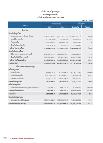 290%u0e23%u0e32%u0e22%u0e07%u0e32%u0e19%u0e1b%u0e23%u0e30%u0e08%u0e33%u0e1b%u0e35 2567 %u0e28%u0e32%u0e25%u0e23%u0e31%u0e10%u0e18%u0e23%u0e23%u0e21%u0e19%u0e39%u0e0d%u0e2a%ufffd%u0e33%u0e19%u0e31%u0e01%u0e07%u0e32%u0e19%u0e28%u0e32%u0e25%u0e23%u0e31%u0e10%u0e18%u0e23%u0e23%u0e21%u0e19%u0e39%u0e0d%u0e07%u0e1a%u0e41%u0e2a%u0e14%u0e07%u0e10%u0e32%u0e19%u0e30%u0e01%u0e32%u0e23%u0e40%u0e07%u0e34%u0e19%u0e13%u0e27%u0e31%u0e19%u0e17%u0e35%u0e4830%u0e01%u0e31%u0e19%u0e22%u0e32%u0e22%u0e192567%u0e41%u0e25%u0e302566(%u0e2b%u0e19%u0e48%u0e27%u0e22:%u0e1a%u0e32%u0e17)%u0e23%u0e32%u0e22%u0e01%u0e32%u0e23%u0e1b%u0e35%u0e07%u0e1a%u0e1b%u0e23%u0e30%u0e21%u0e32%u0e13%u0e40%u0e1e%u0e34%u0e48%u0e21(%u0e25%u0e14)25672566%u0e08%u0e33%u0e19%u0e27%u0e19%u0e40%u0e07%u0e34%u0e19%u0e23%u0e49%u0e2d%u0e22%u0e25%u0e30%u0e2a%u0e34%u0e19%u0e17%u0e23%u0e31%u0e1e%u0e22%u0e4c%u0e2a%u0e34%u0e19%u0e17%u0e23%u0e31%u0e1e%u0e22%u0e4c%u0e2b%u0e21%u0e38%u0e19%u0e40%u0e27%u0e35%u0e22%u0e19 %u0e40%u0e07%u0e34%u0e19%u0e2a%u0e14%u0e41%u0e25%u0e30%u0e23%u0e32%u0e22%u0e01%u0e32%u0e23%u0e40%u0e17%u0e35%u0e22%u0e1a%u0e40%u0e17%u0e48%u0e32%u0e40%u0e07%u0e34%u0e19%u0e2a%u0e14 %u0e25%u0e39%u0e01%u0e2b%u0e19%u0e35%u0e49%u0e2d%u0e37%u0e48%u0e19%u0e23%u0e30%u0e22%u0e30%u0e2a%u0e31%u0e49%u0e19 %u0e27%u0e31%u0e2a%u0e14%u0e38%u0e04%u0e07%u0e40%u0e2b%u0e25%u0e37%u0e2d %u0e2a%u0e34%u0e19%u0e17%u0e23%u0e31%u0e1e%u0e22%u0e4c%u0e2b%u0e21%u0e38%u0e19%u0e40%u0e27%u0e35%u0e22%u0e19%u0e2d%u0e37%u0e48%u0e19%u0e23%u0e27%u0e21%u0e2a%u0e34%u0e19%u0e17%u0e23%u0e31%u0e1e%u0e22%u0e4c%u0e2b%u0e21%u0e38%u0e19%u0e40%u0e27%u0e35%u0e22%u0e19%u0e2a%u0e34%u0e19%u0e17%u0e23%u0e31%u0e1e%u0e22%u0e4c%u0e44%u0e21%u0e48%u0e2b%u0e21%u0e38%u0e19%u0e40%u0e27%u0e35%u0e22%u0e19 %u0e17%u0e35%u0e48%u0e14%u0e34%u0e19 %u0e2d%u0e32%u0e04%u0e32%u0e23 %u0e41%u0e25%u0e30%u0e2d%u0e38%u0e1b%u0e01%u0e23%u0e13%u0e4c - %u0e2a%u0e38%u0e17%u0e18%u0e34 %u0e2a%u0e34%u0e19%u0e17%u0e23%u0e31%u0e1e%u0e22%u0e4c%u0e44%u0e21%u0e48%u0e21%u0e35%u0e15%u0e31%u0e27%u0e15%u0e19 %u2013 %u0e2a%u0e38%u0e17%u0e18%u0e34%u0e23%u0e27%u0e21%u0e2a%u0e34%u0e19%u0e17%u0e23%u0e31%u0e1e%u0e22%u0e4c%u0e44%u0e21%u0e48%u0e2b%u0e21%u0e38%u0e19%u0e40%u0e27%u0e35%u0e22%u0e19209,903,961.81 1,536,476.00 1,983,460.69 205,834.78 213,629,733.28204,908,397.55 106,149,906.61 311,058,304.16220,351,733.92 215,660.00 1,882,885.44 88,276.31 222,538,555.67181,044,851.25 45,328,132.43 226,372,983.68(10,447,772.11)1,320,816.00 100,575.25 117,558.47 (8,908,822.39)23,863,546.30 60,821,774.18 84,685,320.48(4.74)612.45 5.34 133.17 (4.00)13.18 134.18 37.41%u0e23%u0e27%u0e21%u0e2a%u0e34%u0e19%u0e17%u0e23%u0e31%u0e1e%u0e22%u0e4c524,688,037.44448,911,539.3575,776,498.0916.88%u0e2b%u0e19%u0e35%u0e49%u0e2a%u0e34%u0e19%u0e41%u0e25%u0e30%u0e2a%u0e34%u0e19%u0e17%u0e23%u0e31%u0e1e%u0e22%u0e4c/%u0e2a%u0e48%u0e27%u0e19%u0e17%u0e38%u0e19%u0e2b%u0e19%u0e35%u0e49%u0e2a%u0e34%u0e19%u0e2b%u0e21%u0e38%u0e19%u0e40%u0e27%u0e35%u0e22%u0e19 %u0e40%u0e08%u0e49%u0e32%u0e2b%u0e19%u0e35%u0e49%u0e01%u0e32%u0e23%u0e04%u0e49%u0e32 %u0e40%u0e08%u0e49%u0e32%u0e2b%u0e19%u0e35%u0e49%u0e2d%u0e37%u0e48%u0e19%u0e23%u0e30%u0e22%u0e30%u0e2a%u0e31%u0e49%u0e19 %u0e40%u0e07%u0e34%u0e19%u0e23%u0e31%u0e1a%u0e1d%u0e32%u0e01%u0e23%u0e30%u0e22%u0e30%u0e2a%u0e31%u0e49%u0e19%u0e23%u0e27%u0e21%u0e2b%u0e19%u0e35%u0e49%u0e2a%u0e34%u0e19%u0e2b%u0e21%u0e38%u0e19%u0e40%u0e27%u0e35%u0e22%u0e19%u0e2b%u0e19%u0e35%u0e49%u0e2a%u0e34%u0e19%u0e44%u0e21%u0e48%u0e2b%u0e21%u0e38%u0e19%u0e40%u0e27%u0e35%u0e22%u0e19 %u0e40%u0e08%u0e49%u0e32%u0e2b%u0e19%u0e35%u0e49%u0e40%u0e07%u0e34%u0e19%u0e42%u0e2d%u0e19%u0e41%u0e25%u0e30%u0e23%u0e32%u0e22%u0e01%u0e32%u0e23%u0e2d%u0e38%u0e14%u0e2b%u0e19%u0e38%u0e19%u0e23%u0e30%u0e22%u0e30%u0e22%u0e32%u0e27%u0e23%u0e27%u0e21%u0e2b%u0e19%u0e35%u0e49%u0e2a%u0e34%u0e19%u0e44%u0e21%u0e48%u0e2b%u0e21%u0e38%u0e19%u0e40%u0e27%u0e35%u0e22%u0e193,998,929.25 10,072,987.49 1,333,271.70 15,405,188.44135,366.75 135,366.757,124,656.34 5,194,051.51 1,007,706.50 13,326,414.35888,271.70 888,271.70(3,125,727.09) 4,878,935.98 325,565.20 2,078,774.09(752,904.95)(752,904.95)(43.87)93.93 32.31 15.60(84.76)(84.76)%u0e23%u0e27%u0e21%u0e2b%u0e19%u0e35%u0e49%u0e2a%u0e34%u0e1915,540,555.1914,214,686.051,325,869.149.33%u0e2a%u0e34%u0e19%u0e17%u0e23%u0e31%u0e1e%u0e22%u0e4c%u0e2a%u0e38%u0e17%u0e18%u0e34/%u0e2a%u0e48%u0e27%u0e19%u0e17%u0e38%u0e19 %u0e23%u0e32%u0e22%u0e44%u0e14%u0e49%u0e2a%u0e39%u0e07%u0e01%u0e27%u0e48%u0e32%u0e04%u0e48%u0e32%u0e43%u0e0a%u0e49%u0e08%u0e48%u0e32%u0e22%u0e2a%u0e30%u0e2a%u0e21509,147,482.25 434,696,853.30 74,450,628.95 17.13 %u0e23%u0e27%u0e21%u0e2a%u0e34%u0e19%u0e17%u0e23%u0e31%u0e1e%u0e22%u0e4c%u0e2a%u0e38%u0e17%u0e18%u0e34/%u0e2a%u0e48%u0e27%u0e19%u0e17%u0e38%u0e19509,147,482.25434,696,853.3074,450,628.9517.13