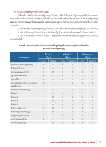 Annual Report 2024 Constitutional Court of the Kingdom of Thailand61%u0009 3.4%u0009 %u0e2d%u0e31%u0e15%u0e23%u0e32%u0e01%ufffd%u0e33%u0e25%u0e31%u0e07%u0e02%u0e2d%u0e07%u0e2a%ufffd%u0e33%u0e19%u0e31%u0e01%u0e07%u0e32%u0e19%u0e28%u0e32%u0e25%u0e23%u0e31%u0e10%u0e18%u0e23%u0e23%u0e21%u0e19%u0e39%u0e0d%u0e19%u0e31%u0e1a%u0e15%u0e31%u0e49%u0e07%u0e41%u0e15%u0e48%u0e21%u0e35%u0e01%u0e32%u0e23%u0e08%u0e31%u0e14%u0e15%u0e31%u0e49%u0e07%u0e2a%ufffd%u0e33%u0e19%u0e31%u0e01%u0e07%u0e32%u0e19%u0e28%u0e32%u0e25%u0e23%u0e31%u0e10%u0e18%u0e23%u0e23%u0e21%u0e19%u0e39%u0e0d%u0e1b%u0e35%u0e1e.%u0e28.2542%u0e2a%ufffd%u0e33%u0e19%u0e31%u0e01%u0e07%u0e32%u0e19%u0e28%u0e32%u0e25%u0e23%u0e31%u0e10%u0e18%u0e23%u0e23%u0e21%u0e19%u0e39%u0e0d%u0e44%u0e14%u0e49%u0e14%ufffd%u0e33%u0e40%u0e19%u0e34%u0e19%u0e01%u0e32%u0e23%u0e2a%u0e23%u0e23%u0e2b%u0e32%u0e1a%u0e38%u0e04%u0e25%u0e32%u0e01%u0e23%u0e40%u0e1e%u0e37%u0e48%u0e2d%u0e23%u0e2d%u0e07%u0e23%u0e31%u0e1a%u0e20%u0e32%u0e23%u0e01%u0e34%u0e08%u0e43%u0e19%u0e01%u0e32%u0e23%u0e2a%u0e19%u0e31%u0e1a%u0e2a%u0e19%u0e38%u0e19%u0e07%u0e32%u0e19%u0e14%u0e49%u0e32%u0e19%u0e1e%u0e34%u0e08%u0e32%u0e23%u0e13%u0e32%u0e27%u0e34%u0e19%u0e34%u0e08%u0e09%u0e31%u0e22%u0e04%u0e14%u0e35%u0e41%u0e25%u0e30%u0e07%u0e32%u0e19%u0e1a%u0e23%u0e34%u0e2b%u0e32%u0e23%u0e14%u0e49%u0e32%u0e19%u0e15%u0e48%u0e32%u0e07%u0e46%u0e02%u0e2d%u0e07%u0e28%u0e32%u0e25%u0e23%u0e31%u0e10%u0e18%u0e23%u0e23%u0e21%u0e19%u0e39%u0e0d%u0e41%u0e25%u0e30%u0e2a%ufffd%u0e33%u0e19%u0e31%u0e01%u0e07%u0e32%u0e19%u0e28%u0e32%u0e25%u0e23%u0e31%u0e10%u0e18%u0e23%u0e23%u0e21%u0e19%u0e39%u0e0d%u0e17%u0e35%u0e48%u0e21%u0e35%u0e1b%u0e23%u0e34%u0e21%u0e32%u0e13%u0e40%u0e1e%u0e34%u0e48%u0e21%u0e02%u0e36%u0e49%u0e19%u0e08%u0e19%u0e16%u0e36%u0e07%u0e1b%u0e31%u0e08%u0e08%u0e38%u0e1a%u0e31%u0e19(%u0e13%u0e27%u0e31%u0e19%u0e17%u0e35%u0e4830%u0e01%u0e31%u0e19%u0e22%u0e32%u0e22%u0e192567)%u0e21%u0e35%u0e2d%u0e31%u0e15%u0e23%u0e32%u0e01%ufffd%u0e33%u0e25%u0e31%u0e07%u0e23%u0e27%u0e21%u0e17%u0e31%u0e49%u0e07%u0e2a%u0e34%u0e49%u0e19274%u0e2d%u0e31%u0e15%u0e23%u0e32%u0e1b%u0e23%u0e30%u0e01%u0e2d%u0e1a%u0e14%u0e49%u0e27%u0e22%u0009 %u0009 %u0009 1)%u0009 %u0e02%u0e49%u0e32%u0e23%u0e32%u0e0a%u0e01%u0e32%u0e23%u0e2a%ufffd%u0e33%u0e19%u0e31%u0e01%u0e07%u0e32%u0e19%u0e28%u0e32%u0e25%u0e23%u0e31%u0e10%u0e18%u0e23%u0e23%u0e21%u0e19%u0e39%u0e0d%u0e08%ufffd%u0e33%u0e19%u0e27%u0e19209%u0e2d%u0e31%u0e15%u0e23%u0e32(%u0e21%u0e35%u0e02%u0e49%u0e32%u0e23%u0e32%u0e0a%u0e01%u0e32%u0e23%u0e14%ufffd%u0e33%u0e23%u0e07%u0e15%ufffd%u0e33%u0e41%u0e2b%u0e19%u0e48%u0e07%u0e2d%u0e22%u0e39%u0e48%u0e08%u0e23%u0e34%u0e07%u0e08%ufffd%u0e33%u0e19%u0e27%u0e19189%u0e2d%u0e31%u0e15%u0e23%u0e32)%u0009 %u0009 %u0009 2)%u0009 %u0e2d%u0e31%u0e15%u0e23%u0e32%u0e01%ufffd%u0e33%u0e25%u0e31%u0e07%u0e02%u0e2d%u0e07%u0e25%u0e39%u0e01%u0e08%u0e49%u0e32%u0e07%u0e1b%u0e23%u0e30%u0e08%ufffd%u0e33 %u0e08%ufffd%u0e33%u0e19%u0e27%u0e1924%u0e2d%u0e31%u0e15%u0e23%u0e32(%u0e21%u0e35%u0e25%u0e39%u0e01%u0e08%u0e49%u0e32%u0e07%u0e1b%u0e23%u0e30%u0e08%ufffd%u0e33%u0e14%ufffd%u0e33%u0e23%u0e07%u0e15%ufffd%u0e33%u0e41%u0e2b%u0e19%u0e48%u0e07%u0e2d%u0e22%u0e39%u0e48%u0e08%u0e23%u0e34%u0e07%u0e08%ufffd%u0e33%u0e19%u0e27%u0e1924%u0e2d%u0e31%u0e15%u0e23%u0e32)%u0009 %u0009 %u0009 3)%u0009 %u0e2d%u0e31%u0e15%u0e23%u0e32%u0e01%ufffd%u0e33%u0e25%u0e31%u0e07%u0e02%u0e2d%u0e07%u0e1e%u0e19%u0e31%u0e01%u0e07%u0e32%u0e19%u0e23%u0e32%u0e0a%u0e01%u0e32%u0e23%u0e08%ufffd%u0e33%u0e19%u0e27%u0e1941%u0e2d%u0e31%u0e15%u0e23%u0e32(%u0e21%u0e35%u0e1e%u0e19%u0e31%u0e01%u0e07%u0e32%u0e19%u0e23%u0e32%u0e0a%u0e01%u0e32%u0e23%u0e14%ufffd%u0e33%u0e23%u0e07%u0e15%ufffd%u0e33%u0e41%u0e2b%u0e19%u0e48%u0e07%u0e2d%u0e22%u0e39%u0e48%u0e08%u0e23%u0e34%u0e07%u0e08%ufffd%u0e33%u0e19%u0e27%u0e1929%u0e2d%u0e31%u0e15%u0e23%u0e32)%u0e23%u0e32%u0e22%u0e25%u0e30%u0e40%u0e2d%u0e35%u0e22%u0e14%u0e14%u0e31%u0e07%u0e19%u0e35%u0e49%u0e15%u0e32%u0e23%u0e32%u0e07%u0e17%u0e35%u0e481%u0e41%u0e2a%u0e14%u0e07%u0e08%ufffd%u0e33%u0e19%u0e27%u0e19%u0e2d%u0e31%u0e15%u0e23%u0e32%u0e01%ufffd%u0e33%u0e25%u0e31%u0e07%u0e41%u0e25%u0e30%u0e08%ufffd%u0e33%u0e19%u0e27%u0e19%u0e17%u0e35%u0e48%u0e21%u0e35%u0e2d%u0e22%u0e39%u0e48%u0e08%u0e23%u0e34%u0e07%u0e02%u0e2d%u0e07%u0e02%u0e49%u0e32%u0e23%u0e32%u0e0a%u0e01%u0e32%u0e23%u0e41%u0e25%u0e30%u0e25%u0e39%u0e01%u0e08%u0e49%u0e32%u0e07%u0e15%u0e32%u0e21%u0e42%u0e04%u0e23%u0e07%u0e2a%u0e23%u0e49%u0e32%u0e07%u0e02%u0e2d%u0e07%u0e2a%ufffd%u0e33%u0e19%u0e31%u0e01%u0e07%u0e32%u0e19%u0e28%u0e32%u0e25%u0e23%u0e31%u0e10%u0e18%u0e23%u0e23%u0e21%u0e19%u0e39%u0e0d%u0e2a%u0e33%u0e19%u0e31%u0e01/%u0e01%u0e25%u0e38%u0e48%u0e21%u0e07%u0e32%u0e19%u0e02%u0e49%u0e32%u0e23%u0e32%u0e0a%u0e01%u0e32%u0e23(%u0e2d%u0e31%u0e15%u0e23%u0e32)%u0e25%u0e39%u0e01%u0e08%u0e49%u0e32%u0e07%u0e1b%u0e23%u0e30%u0e08%u0e33(%u0e2d%u0e31%u0e15%u0e23%u0e32)%u0e1e%u0e19%u0e31%u0e01%u0e07%u0e32%u0e19%u0e23%u0e32%u0e0a%u0e01%u0e32%u0e23(%u0e2d%u0e31%u0e15%u0e23%u0e32)%u0e01%u0e23%u0e2d%u0e1a%u0e17%u0e35%u0e48%u0e21%u0e35%u0e2d%u0e22%u0e39%u0e48%u0e08%u0e23%u0e34%u0e07%u0e01%u0e23%u0e2d%u0e1a%u0e17%u0e35%u0e48%u0e21%u0e35%u0e2d%u0e22%u0e39%u0e48%u0e08%u0e23%u0e34%u0e07%u0e01%u0e23%u0e2d%u0e1a%u0e17%u0e35%u0e48%u0e21%u0e35%u0e2d%u0e22%u0e39%u0e48%u0e08%u0e23%u0e34%u0e07%u0e1c%u0e39%u0e49%u0e1a%u0e23%u0e34%u0e2b%u0e32%u0e23%u0e2a%u0e33%u0e19%u0e31%u0e01%u0e07%u0e32%u0e19%u0e28%u0e32%u0e25%u0e23%u0e31%u0e10%u0e18%u0e23%u0e23%u0e21%u0e19%u0e39%u0e0d530000%u0e17%u0e35%u0e48%u0e1b%u0e23%u0e36%u0e01%u0e29%u0e32%u0e14%u0e49%u0e32%u0e19%u0e27%u0e34%u0e0a%u0e32%u0e01%u0e32%u0e23100000%u0e1c%u0e39%u0e49%u0e17%u0e23%u0e07%u0e04%u0e38%u0e13%u0e27%u0e38%u0e12%u0e34%u0e41%u0e25%u0e30%u0e1c%u0e39%u0e49%u0e40%u0e0a%u0e35%u0e48%u0e22%u0e27%u0e0a%u0e32%u0e0d15130000%u0e01%u0e25%u0e38%u0e48%u0e21%u0e07%u0e32%u0e19%u0e15%u0e23%u0e27%u0e08%u0e2a%u0e2d%u0e1a%u0e20%u0e32%u0e22%u0e43%u0e19330000%u0e01%u0e25%u0e38%u0e48%u0e21%u0e07%u0e32%u0e19%u0e19%u0e34%u0e15%u0e34%u0e01%u0e32%u0e23440011%u0e01%u0e25%u0e38%u0e48%u0e21%u0e07%u0e32%u0e19%u0e2a%u0e19%u0e31%u0e1a%u0e2a%u0e19%u0e38%u0e19%u0e1