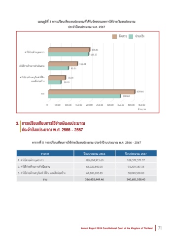 Annual Report 2024 Constitutional Court of the Kingdom of Thailand71%u0e41%u0e1c%u0e19%u0e20%u0e39%u0e21%u0e34%u0e17%u0e35%u0e48 3 %u0e01%u0e32%u0e23%u0e40%u0e1b%u0e23%u0e35%u0e22%u0e1a%u0e40%u0e17%u0e35%u0e22%u0e1a%u0e07%u0e1a%u0e1b%u0e23%u0e30%u0e21%u0e32%u0e13%u0e17%u0e35%u0e48%u0e44%u0e14%u0e49%u0e23%u0e31%u0e1a%u0e08%u0e31%u0e14%u0e2a%u0e23%u0e23%u0e41%u0e25%u0e30%u0e01%u0e32%u0e23%u0e43%u0e0a%u0e49%u0e08%u0e48%u0e32%u0e22%u0e40%u0e07%u0e34%u0e19%u0e07%u0e1a%u0e1b%u0e23%u0e30%u0e21%u0e32%u0e13%u0e1b%u0e23%u0e30%u0e08%ufffd%u0e33%u0e1b%u0e35%u0e07%u0e1a%u0e1b%u0e23%u0e30%u0e21%u0e32%u0e13 %u0e1e.%u0e28. 2567%u0e15%u0e32%u0e23%u0e32%u0e07%u0e17%u0e35%u0e48 5 %u0e01%u0e32%u0e23%u0e40%u0e1b%u0e23%u0e35%u0e22%u0e1a%u0e40%u0e17%u0e35%u0e22%u0e1a%u0e01%u0e32%u0e23%u0e43%u0e0a%u0e49%u0e08%u0e48%u0e32%u0e22%u0e40%u0e07%u0e34%u0e19%u0e07%u0e1a%u0e1b%u0e23%u0e30%u0e21%u0e32%u0e13 %u0e1b%u0e23%u0e30%u0e08%ufffd%u0e33%u0e1b%u0e35%u0e07%u0e1a%u0e1b%u0e23%u0e30%u0e21%u0e32%u0e13 %u0e1e.%u0e28. 2566 - 25673.%u0009 %u0e01%u0e32%u0e23%u0e40%u0e1b%u0e23%u0e35%u0e22%u0e1a%u0e40%u0e17%u0e35%u0e22%u0e1a%u0e01%u0e32%u0e23%u0e43%u0e0a%u0e49%u0e08%u0e48%u0e32%u0e22%u0e40%u0e07%u0e34%u0e19%u0e07%u0e1a%u0e1b%u0e23%u0e30%u0e21%u0e32%u0e13%u0009 %u0e1b%u0e23%u0e30%u0e08%ufffd%u0e33%u0e1b%u0e35%u0e07%u0e1a%u0e1b%u0e23%u0e30%u0e21%u0e32%u0e13%u0e1e.%u0e28.2566-2567%u0e23%u0e32%u0e22%u0e01%u0e32%u0e23%u0e1b%u0e35%u0e07%u0e1a%u0e1b%u0e23%u0e30%u0e21%u0e32%u0e13 2566%u0e1b%u0e35%u0e07%u0e1a%u0e1b%u0e23%u0e30%u0e21%u0e32%u0e13 25671.%u0e04%u0e48%u0e32%u0e43%u0e0a%u0e49%u0e08%u0e48%u0e32%u0e22%u0e14%u0e49%u0e32%u0e19%u0e1a%u0e38%u0e04%u0e25%u0e32%u0e01%u0e23185,604,915.60189,372,371.072.%u0e04%u0e48%u0e32%u0e43%u0e0a%u0e49%u0e08%u0e48%u0e32%u0e22%u0e14%u0e49%u0e32%u0e19%u0e01%u0e32%u0e23%u0e14%u0e33%u0e40%u0e19%u0e34%u0e19%u0e07%u0e32%u0e1966,022,840.0393,209,187.333.%u0e04%u0e48%u0e32%u0e43%u0e0a%u0e49%u0e08%u0e48%u0e32%u0e22%u0e14%u0e49%u0e32%u0e19%u0e04%u0e23%u0e38%u0e20%u0e31%u0e13%u0e11%u0e4c%u0e17%u0e35%u0e48%u0e14%u0e34%u0e19%u0e41%u0e25%u0e30%u0e2a%u0e34%u0e48%u0e07%u0e01%u0e48%u0e2d%u0e2a%u0e23%u0e49%u0e32%u0e0764,800,693.8358,099,500.00%u0e23%u0e27%u0e21316,428,449.46340,681,058.40%u0e04%u0e48%u0e32%u0e43%u0e0a%u0e49%u0e08%u0e48%u0e32%u0e22%u0e14%u0e49%u0e32%u0e19%u0e1a%u0e38%u0e04%u0e25%u0e32%u0e01%u0e23%u0e04%u0e48%u0e32%u0e43%u0e0a%u0e49%u0e08%u0e48%u0e32%u0e22%u0e14%u0e49%u0e32%u0e19%u0e01%u0e32%u0e23%u0e14%ufffd%u0e33%u0e40%u0e19%u0e34%u0e19%u0e07%u0e32%u0e19%u0e04%u0e48%u0e32%u0e43%u0e0a%u0e49%u0e08%u0e48%u0e32%u0e22%u0e14%u0e49%u0e32%u0e19%u0e04%u0e23%u0e38%u0e20%u0e31%u0e13%u0e11%u0e4c%u0e17%u0e35%u0e48%u0e14%u0e34%u0e19%u0e41%u0e25%u0e30%u0e2a%u0e34%u0e48%u0e07%u0e01%u0e48%u0e2d%u0e2a%u0e23%u0e49%u0e32%u0e07%u0e23%u0e27%u0e21%u0e08%u0e31%u0e14%u0e2a%u0e23%u0e23%u0e08%u0e48%u0e32%u0e22%u0e08%u0e23%u0e34%u0e07%u0e25%u0e49%u0e32%u0e19%u0e1a%u0e32%u0e17100.00150.00200.00250.00300.00409.64340.6858.1078.9993.21136.24189.37194.41050.00350.00400.00450.00