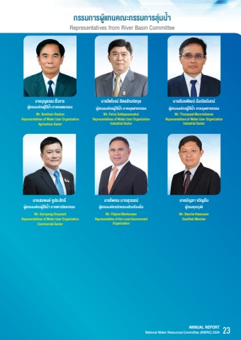 %u0e01%u0e23%u0e23%u0e21%u0e01%u0e32%u0e23%u0e1c%u0e39%u0e49%u0e41%u0e17%u0e19%u0e04%u0e13%u0e30%u0e01%u0e23%u0e23%u0e21%u0e01%u0e32%u0e23%u0e25%u0e38%u0e48%u0e21%u0e19%u0e49%u0e33Representatives from River Basin Committee%u0e19%u0e32%u0e22%u0e1a%u0e38%u0e38%u0e0d%u0e18%u0e23%u0e23%u0e21 %u0e40%u0e23%u0e47%u0e47%u0e27%u0e01%u0e32%u0e23%u0e1c%u0e39%u0e49%u0e41%u0e17%u0e19%u0e2d%u0e07%u0e49%u0e04%u0e4c%u0e4c%u0e01%u0e23%u0e1c%u0e39%u0e49%u0e49%u0e43%u0e0a%u0e49%u0e19%u0e49%u0e49%u0e33 %u0e20%u0e32%u0e04%u0e40%u0e01%u0e29%u0e15%u0e23%u0e01%u0e23%u0e23%u0e21%u0e19%u0e32%u0e22%u0e2a%u0e21%u0e1e%u0e07%u0e29%u0e4c%u0e4c %u0e0a%u0e39%u0e39%u0e1b%u0e23%u0e30%u0e2a%u0e34%u0e34%u0e17%u0e18%u0e34%u0e4c%u0e4c%ufffd%u0e1c%u0e39%u0e49%u0e49%u0e41%u0e17%u0e19%u0e2d%u0e07%u0e04%u0e4c%u0e4c%u0e01%u0e23%u0e1c%u0e39%u0e49%u0e49%u0e43%u0e0a%u0e49%u0e49%u0e19%u0e49%u0e49%u0e33 %u0e20%u0e32%u0e04%u0e1e%u0e32%u0e13%u0e34%u0e34%u0e0a%u0e22%u0e01%u0e23%u0e23%u0e21%u0e19%u0e32%u0e22%u0e44%u0e1e%u0e42%u0e23%u0e08%u0e19%u0e4c%u0e4c %u0e2a%u0e31%u0e31%u0e15%u0e22%u0e2a%u0e31%u0e31%u0e13%u0e2b%u0e4c%u0e4c%u0e2a%u0e01%u0e38%u0e38%u0e25%u0e1c%u0e39%u0e49%u0e49%u0e41%u0e17%u0e19%u0e2d%u0e07%u0e04%u0e4c%u0e4c%u0e01%u0e23%u0e1c%u0e39%u0e49%u0e49%u0e43%u0e0a%u0e49%u0e49%u0e19%u0e49%u0e49%u0e33 %u0e20%u0e32%u0e04%u0e2d%u0e38%u0e38%u0e15%u0e2a%u0e32%u0e2b%u0e01%u0e23%u0e23%u0e21%u0e19%u0e32%u0e22%u0e44%u0e1e%u0e40%u0e08%u0e19 %u0e21%u0e32%u0e01%u0e2a%u0e38%u0e38%u0e27%u0e23%u0e23%u0e13%u0e4c%u0e4c%u0e1c%u0e39%u0e49%u0e49%u0e41%u0e17%u0e19%u0e2d%u0e07%u0e04%u0e4c%u0e4c%u0e01%u0e23%u0e1b%u0e01%u0e04%u0e23%u0e2d%u0e07%u0e2a%u0e48%u0e48%u0e27%u0e19%u0e17%u0e49%u0e49%u0e2d%u0e07%u0e16%u0e34%u0e48%u0e48%ufffd%u0e19%u0e19%u0e32%u0e22%u0e18%u0e31%u0e31%u0e19%u0e22%u0e1e%u0e31%u0e31%u0e12%u0e19%u0e4c%u0e4c %u0e21%u0e31%u0e48%u0e48%ufffd%u0e19%u0e13%u0e34%u0e34%u0e0a%u0e19%u0e31%u0e31%u0e19%u0e17%u0e19%u0e4c%u0e4c %u0e1c%u0e39%u0e49%u0e49%u0e41%u0e17%u0e19%u0e2d%u0e07%u0e04%u0e4c%u0e4c%u0e01%u0e23%u0e1c%u0e39%u0e49%u0e49%u0e43%u0e0a%u0e49%u0e49%u0e19%u0e49%u0e49%u0e33 %u0e20%u0e32%u0e04%u0e2d%u0e38%u0e38%u0e15%u0e2a%u0e32%u0e2b%u0e01%u0e23%u0e23%u0e21%u0e19%u0e32%u0e22%u0e1a%u0e31%u0e31%u0e0d%u0e0a%u0e32 %u0e02%u0e27%u0e31%u0e31%u0e0d%u0e22%u0e37%u0e37%u0e19 %u0e1c%u0e39%u0e49%u0e49%u0e17%u0e23%u0e07%u0e04%u0e38%u0e38%u0e13%u0e27%u0e38%u0e38%u0e12%u0e34%u0e34Mr. Buntham Reokan Representatives of Water User Organization Agriculture SectorMr. Sompong Choprasit Representatives of Water User Organization Commercial SectorMr. Pairoj Sattayasansakul Representatives of Water User Organization Industrial SectorMr. Paijane Marksuwan Representative of the Local Government OrganizationMr. Thunyapat Marnnichanan Representatives of Water User Organization Industrial SectorMr. Bancha Kwanyuen Qualified Member23ANNUAL REPORTNational Water Resources Committee (NWRC) 2024