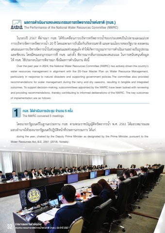%u0e1c%u0e25%u0e01%u0e32%u0e23%u0e14%u0e33%u0e40%u0e19%u0e34%u0e19%u0e07%u0e32%u0e19%u0e02%u0e2d%u0e07%u0e04%u0e13%u0e30%u0e01%u0e23%u0e23%u0e21%u0e01%u0e32%u0e23%u0e17%u0e23%u0e31%u0e1e%u0e22%u0e32%u0e01%u0e23%u0e19%u0e49%u0e33%u0e41%u0e2b%u0e48%u0e07%u0e0a%u0e32%u0e15%u0e34 (%u0e01%u0e19%u0e0a.)The Performance of the National Water Resources Committee (NWRC)%u0e01%u0e19%u0e0a. %u0e44%u0e14%u0e49%u0e14%u0e33%u0e40%u0e19%u0e34%u0e19%u0e01%u0e32%u0e23%u0e1b%u0e23%u0e30%u0e0a%u0e38%u0e21 %u0e08%u0e33%u0e19%u0e27%u0e19 5 %u0e04%u0e23%u0e31%u0e49%u0e07The NWRC convened 5 meetings%u0009 %u0e42%u0e14%u0e22%u0e19%u0e32%u0e22%u0e01%u0e23%u0e31%u0e31%u0e10%u0e21%u0e19%u0e15%u0e23%u0e35%u0e35%u0e43%u0e19%u0e10%u0e32%u0e19%u0e30%u0e1b%u0e23%u0e30%u0e18%u0e32%u0e19%u0e01%u0e19%u0e0a.%u0e15%u0e32%u0e21%u0e1e%u0e23%u0e30%u0e23%u0e32%u0e0a%u0e1a%u0e31%u0e31%u0e0d%u0e0d%u0e31%u0e31%u0e15%u0e34%u0e34%u0e17%u0e23%u0e31%u0e31%u0e1e%u0e22%u0e32%u0e01%u0e23%u0e19%u0e49%u0e49%u0e33%u0e1e.%u0e28.2561%u0e44%u0e14%u0e49%u0e49%u0e21%u0e2d%u0e1a%u0e2b%u0e21%u0e32%u0e22%u0e41%u0e25%u0e30%u0e21%u0e2d%u0e1a%u0e2d%u0e33%u0e19%u0e32%u0e08%u0e43%u0e2b%u0e49%u0e49%u0e23%u0e2d%u0e07%u0e19%u0e32%u0e22%u0e01%u0e23%u0e31%u0e31%u0e10%u0e21%u0e19%u0e15%u0e23%u0e35%u0e35%u0e1b%u0e0f%u0e34%u0e34%u0e1a%u0e31%u0e31%u0e15%u0e34%u0e34%u0e2b%u0e19%u0e49%u0e49%u0e32%u0e17%u0e35%u0e48%u0e48%ufffd%u0e1b%u0e23%u0e30%u0e18%u0e32%u0e19%u0e01%u0e23%u0e23%u0e21%u0e01%u0e32%u0e23 %u0e44%u0e14%u0e49%u0e49%u0e41%u0e01%u0e48%u0009 %u0e43%u0e19%u0e23%u0e2d%u0e1a%u0e1b%u0e35%u0e352567 %u0e17%u0e35%u0e48%u0e48%ufffd%u0e1c%u0e48%u0e48%u0e32%u0e19%u0e21%u0e32%u0e01%u0e19%u0e0a.%u0e44%u0e14%u0e49%u0e49%u0e02%u0e31%u0e31%u0e1a%u0e40%u0e04%u0e25%u0e37%u0e48%u0e48%ufffd%u0e2d%u0e19%u0e01%u0e32%u0e23%u0e1a%u0e23%u0e34%u0e34%u0e2b%u0e32%u0e23%u0e17%u0e23%u0e31%u0e31%u0e1e%u0e22%u0e32%u0e01%u0e23%u0e19%u0e49%u0e49%u0e33%u0e02%u0e2d%u0e07%u0e1b%u0e23%u0e30%u0e40%u0e17%u0e28%u0e40%u0e1b%u0e47%u0e47%u0e19%u0e44%u0e1b%u0e15%u0e32%u0e21%u0e41%u0e1c%u0e19%u0e41%u0e21%u0e48%u0e1a%u0e17%u0e01%u0e32%u0e23%u0e1a%u0e23%u0e34%u0e34%u0e2b%u0e32%u0e23%u0e08%u0e31%u0e31%u0e14%u0e01%u0e32%u0e23%u0e17%u0e23%u0e31%u0e31%u0e1e%u0e22%u0e32%u0e01%u0e23%u0e19%u0e49%u0e49%u0e3320 %u0e1b%u0e35%u0e35%u0e42%u0e14%u0e22%u0e40%u0e09%u0e1e%u0e32%u0e30%u0e01%u0e32%u0e23%u0e23%u0e31%u0e31%u0e1a%u0e21%u0e37%u0e37%u0e2d%u0e01%u0e31%u0e31%u0e1a%u0e20%u0e31%u0e31%u0e22%u0e18%u0e23%u0e23%u0e21%u0e0a%u0e32%u0e15%u0e34%u0e34%u0e41%u0e25%u0e30%u0e15%u0e32%u0e21%u0e19%u0e42%u0e22%u0e1a%u0e32%u0e22%u0e02%u0e2d%u0e07%u0e23%u0e31%u0e31%u0e10%u0e1a%u0e32%u0e25%u0e15%u0e25%u0e2d%u0e14%u0e08%u0e19%u0e40%u0e2a%u0e19%u0e2d%u0e41%u0e19%u0e30%u0e01%u0e32%u0e23%u0e1a%u0e23%u0e34%u0e34%u0e2b%u0e32%u0e23%u0e08%u0e31%u0e31%u0e14%u0e01%u0e32%u0e23%u0e19%u0e49%u0e49%u0e33%u0e43%u0e19%u0e0a%u0e48%u0e48%u0e27%u0e07%u0e24%u0e14%u0e39%u0e39%u0e1d%u0e19%u0e41%u0e25%u0e30%u0e0a%u0e48%u0e48%u0e27%u0e07%u0e24%u0e14%u0e39%u0e39%u0e41%u0e25%u0e49%u0e49%u0e07%u0e17%u0e33%u0e43%u0e2b%u0e49%u0e49%u0e40%u0e01%u0e34%u0e34%u0e14%u0e01%u0e32%u0e23%u0e1a%u0e39%u0e23%u0e39%u0e13%u0e32%u0e01%u0e32%u0e23%u0e01%u0e32%u0e23%u0e14%u0e33%u0e40%u0e19%u0e34%u0e34%u0e19%u0e07%u0e32%u0e19%u0e2d%u0e22%u0e48%u0e48%u0e32%u0e07%u0e40%u0e1b%u0e47%u0e47%u0e19%u0e23%u0e39%u0e39%u0e1b%u0e18%u0e23%u0e23%u0e21%u0e41%u0e25%u0e30%u0e0a%u0e31%u0e31%u0e14%u0e40%u0e08%u0e19%u0e42%u0e14%u0e22%u0e21%u0e35%u0e35%u0e04%u0e13%u0e30%u0e2d%u0e19%u0e38%u0e38%u0e01%u0e23%u0e23%u0e21%u0e01%u0e32%u0e23%u0e17%u0e35%u0e48%u0e48%ufffd%u0e01%u0e19%u0e0a.%u0e41%u0e15%u0e48%u0e48%u0e07%u0e15%u0e31%u0e49%u0e49%u0e07 %u0e1e%u0e34%u0e34%u0e08%u0e32%u0e23%u0e13%u0e32%u0e01%u0e25%u0e31%u0e48%u0e48%ufffd%u0e19%u0e01%u0e23%u0e2d%u0e07%u0e41%u0e25%u0e30%u0e40%u0e2a%u0e19%u0e2d%u0e41%u0e19%u0e30%u0e43%u0e19%u0e01%u0e32%u0e23%u0e2a%u0e19%u0e31%u0e31%u0e1a%u0e2a%u0e19%u0e38%u0e38%u0e19%u0e02%u0e49%u0e49%u0e2d%u0e21%u0e39%u0e39%u0e25%u0e43%u0e2b%u0e49%u0e49%u0e01%u0e19%u0e0a.%u0e43%u0e0a%u0e49%u0e49%u0e1b%u0e23%u0e30%u0e01%u0e2d%u0e1a%u0e43%u0e19%u0e01%u0e32%u0e23%u0e1e%u0e34%u0e34%u0e08%u0e32%u0e23%u0e13%u0e32%u0e0b%u0e36%u0e48%u0e48%ufffd%u0e07%u0e21%u0e35%u0e35%u0e1c%u0e25%u0e01%u0e32%u0e23%u0e14%u0e33%u0e40%u0e19%u0e34%u0e34%u0e19%u0e07%u0e32%u0e19 %u0e14%u0e31%u0e31%u0e07%u0e19%u0e35%u0e49%u0e491Over the past year in 2024, the National Water Resources Committee (NWRC) has actively driven the country%u2019swater resources management in alignment with the 20-Year Master Plan on Water Resource Management, particularly in response to natural disasters and supporting government policies.The committee also provided recommendations for water management during the rainy and dry seasons, resulting in tangible and integrated outcomes. To support decision-making, subcommittees appointed by the NWRC have been tasked with reviewing and providing recommendations, thereby contributing to informed deliberations of the NWRC. The key outcomes of implementation are as follows:during the year, chaired by the Deputy Prime Minister as designated by the Prime Minister, pursuant to the Water Resources Act, B.E. 2561 (2018). Notably:%u0e23%u0e32%u0e22%u0e07%u0e32%u0e19%u0e1c%u0e25%u0e01%u0e32%u0e23%u0e14%u0e33%u0e40%u0e19%u0e34%u0e34%u0e19%u0e07%u0e32%u0e1932%u0e02%u0e2d%u0e07%u0e04%u0e13%u0e30%u0e01%u0e23%u0e23%u0e21%u0e01%u0e32%u0e23%u0e17%u0e23%u0e31%u0e31%u0e1e%u0e22%u0e32%u0e01%u0e23%u0e19%u0e49%u0e49%u0e33%u0e41%u0e2b%u0e48%u0e48%u0e07%u0e0a%u0e32%u0e15%u0e34%u0e34 (%u0e01%u0e19%u0e0a.) %u0e1b%u0e23%u0e30%u0e08%u0e33%u0e1b%u0e35%u0e35 2567
