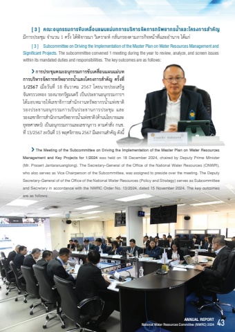 %u203a%u0e01%u0e32%u0e23%u0e1b%u0e23%u0e30%u0e0a%u0e38%u0e38%u0e21%u0e04%u0e13%u0e30%u0e2d%u0e19%u0e38%u0e38%u0e01%u0e23%u0e23%u0e21%u0e01%u0e32%u0e23%u0e02%u0e31%u0e31%u0e1a%u0e40%u0e04%u0e25%u0e37%u0e48%u0e48%ufffd%u0e2d%u0e19%u0e41%u0e1c%u0e19%u0e41%u0e21%u0e48%u0e48%u0e1a%u0e17%u0e01%u0e32%u0e23%u0e1a%u0e23%u0e34%u0e34%u0e2b%u0e32%u0e23%u0e08%u0e31%u0e31%u0e14%u0e01%u0e32%u0e23%u0e17%u0e23%u0e31%u0e31%u0e1e%u0e22%u0e32%u0e01%u0e23%u0e19%u0e49%u0e49%u0e33%u0e41%u0e25%u0e30%u0e42%u0e04%u0e23%u0e07%u0e01%u0e32%u0e23%u0e2a%u0e33%u0e04%u0e31%u0e31%u0e0d %u0e04%u0e23%u0e31%u0e49%u0e49%u0e07%u0e17%u0e35%u0e48%u0e48%ufffd 1/2567 %u0e40%u0e21%u0e37%u0e48%u0e48%ufffd%u0e2d%u0e27%u0e31%u0e31%u0e19%u0e17%u0e35%u0e48%u0e48%ufffd 18 %u0e18%u0e31%u0e31%u0e19%u0e27%u0e32%u0e04%u0e21 2567 %u0e42%u0e14%u0e22%u0e19%u0e32%u0e22%u0e1b%u0e23%u0e30%u0e40%u0e2a%u0e23%u0e34%u0e34%u0e10%u0e08%u0e31%u0e31%u0e19%u0e17%u0e23%u0e23%u0e27%u0e07%u0e17%u0e2d%u0e07 %u0e23%u0e2d%u0e07%u0e19%u0e32%u0e22%u0e01%u0e23%u0e31%u0e31%u0e10%u0e21%u0e19%u0e15%u0e23%u0e35%u0e35%u0e40%u0e1b%u0e47%u0e47%u0e19%u0e1b%u0e23%u0e30%u0e18%u0e32%u0e19%u0e2d%u0e19%u0e38%u0e38%u0e01%u0e23%u0e23%u0e21%u0e01%u0e32%u0e23%u0e2f %u0e44%u0e14%u0e49%u0e49%u0e21%u0e2d%u0e1a%u0e2b%u0e21%u0e32%u0e22%u0e43%u0e2b%u0e49%u0e49%u0e40%u0e25%u0e02%u0e32%u0e18%u0e34%u0e34%u0e01%u0e32%u0e23%u0e2a%u0e33%u0e19%u0e31%u0e31%u0e01%u0e07%u0e32%u0e19%u0e17%u0e23%u0e31%u0e31%u0e1e%u0e22%u0e32%u0e01%u0e23%u0e19%u0e49%u0e49%u0e33%u0e41%u0e2b%u0e48%u0e48%u0e07%u0e0a%u0e32%u0e15%u0e34%u0e34%u0e23%u0e2d%u0e07%u0e1b%u0e23%u0e30%u0e18%u0e32%u0e19%u0e2d%u0e19%u0e38%u0e38%u0e01%u0e23%u0e23%u0e21%u0e01%u0e32%u0e23%u0e40%u0e1b%u0e47%u0e47%u0e19%u0e1b%u0e23%u0e30%u0e18%u0e32%u0e19%u0e01%u0e32%u0e23%u0e1b%u0e23%u0e30%u0e0a%u0e38%u0e38%u0e21 %u0e41%u0e25%u0e30%u0e23%u0e2d%u0e07%u0e40%u0e25%u0e02%u0e32%u0e18%u0e34%u0e34%u0e01%u0e32%u0e23%u0e2a%u0e33%u0e19%u0e31%u0e31%u0e01%u0e07%u0e32%u0e19%u0e17%u0e23%u0e31%u0e31%u0e1e%u0e22%u0e32%u0e01%u0e23%u0e19%u0e49%u0e49%u0e33%u0e41%u0e2b%u0e48%u0e48%u0e07%u0e0a%u0e32%u0e15%u0e34%u0e34 (%u0e14%u0e49%u0e49%u0e32%u0e19%u0e19%u0e42%u0e22%u0e1a%u0e32%u0e22%u0e41%u0e25%u0e30%u0e22%u0e38%u0e17%u0e18%u0e38%u0e17%u0e18%u0e28%u0e32%u0e2a%u0e15%u0e23%u0e4c) %u0e40%u0e4c%u0e1b%u0e47%u0e19%u0e2d%u0e47%u0e19%u0e38%u0e01%u0e23%u0e23%u0e38%u0e21%u0e01%u0e32%u0e23%u0e41%u0e25%u0e30%u0e40%u0e25%u0e02%u0e32%u0e19%u0e38%u0e01%u0e32%u0e23 %u0e15%u0e32%u0e38%u0e21%u0e04%u0e33%u0e2a%u0e31%u0e48%u0e48%u0e07 %u0e01%u0e19%u0e0a.%u0e2a%u0e31%u0e48%u0e48%ufffd%u0e17%u0e35%u0e48%u0e48%ufffd 13/2567 %u0e25%u0e07%u0e27%u0e31%u0e31%u0e19%u0e17%u0e35%u0e48%u0e48%ufffd 15 %u0e1e%u0e24%u0e28%u0e08%u0e34%u0e34%u0e01%u0e32%u0e22%u0e19 2567 %u0e21%u0e35%u0e35%u0e1c%u0e25%u0e07%u0e32%u0e19%u0e2a%u0e33%u0e21%u0e35%u0e35%u0e04%u0e31%u0e31%u0e0d %u0e14%u0e31%u0e31%u0e07%u0e19%u0e35%u0e49%u0e49%u0009 [3]%u0009 %u0e04%u0e13%u0e30%u0e2d%u0e19%u0e38%u0e38%u0e01%u0e23%u0e23%u0e21%u0e01%u0e32%u0e23%u0e02%u0e31%u0e31%u0e1a%u0e40%u0e04%u0e25%u0e37%u0e48%u0e48%ufffd%u0e2d%u0e19%u0e41%u0e1c%u0e19%u0e41%u0e21%u0e48%u0e48%u0e1a%u0e17%u0e01%u0e32%u0e23%u0e1a%u0e23%u0e34%u0e34%u0e2b%u0e32%u0e23%u0e08%u0e31%u0e31%u0e14%u0e01%u0e32%u0e23%u0e17%u0e23%u0e31%u0e31%u0e1e%u0e22%u0e32%u0e01%u0e23%u0e19%u0e49%u0e49%u0e33%u0e41%u0e25%u0e30%u0e42%u0e04%u0e23%u0e07%u0e01%u0e32%u0e23%u0e2a%u0e33%u0e04%u0e31%u0e31%u0e0d%u0e21%u0e35%u0e35%u0e01%u0e32%u0e23%u0e1b%u0e23%u0e30%u0e0a%u0e38%u0e38%u0e21%u0e08%u0e33%u0e19%u0e27%u0e19 1 %u0e04%u0e23%u0e31%u0e49%u0e49%u0e07 %u0e44%u0e14%u0e49%u0e49%u0e1e%u0e34%u0e34%u0e08%u0e32%u0e23%u0e13%u0e32 %u0e27%u0e34%u0e34%u0e40%u0e04%u0e23%u0e32%u0e30%u0e2b%u0e4c%u0e4c %u0e01%u0e25%u0e31%u0e48%u0e48%ufffd%u0e19%u0e01%u0e23%u0e2d%u0e07%u0e15%u0e32%u0e21%u0e20%u0e32%u0e23%u0e01%u0e34%u0e34%u0e08%u0e2b%u0e19%u0e49%u0e49%u0e32%u0e17%u0e35%u0e48%u0e48%ufffd%u0e41%u0e25%u0e30%u0e2d%u0e33%u0e19%u0e32%u0e08 %u0e44%u0e14%u0e49%u0e49%u0e41%u0e01%u0e48[ 3 ]Subcommittee on Driving the Implementation of the Master Plan on Water Resources Management and Significant Projects. The subcommittee convened 1 meeting during the year to review, analyze, and screen issues within its mandated duties and responsibilities. The key outcomes are as follows:%u0009 %u203a%u0009The Meeting of the Subcommittee on Driving the Implementation of the Master Plan on Water Resources Management and Key Projects for 1/2024 was held on 18 December 2024, chaired by Deputy Prime Minister(Mr. Prasert Jantararuangtong). The Secretary-General of the Office of the National Water Resources (ONWR), who also serves as Vice Chairperson of the Subcommittee, was assigned to preside over the meeting. The Deputy Secretary-General of of the Office of the National Water Resources (Policy and Strategy) serves as Subcommittee and Secretary in accordance with the NWRC Order No. 13/2024, dated 15 November 2024. The key outcomes are as follows:43ANNUAL REPORTNational Water Resources Committee (NWRC) 2024