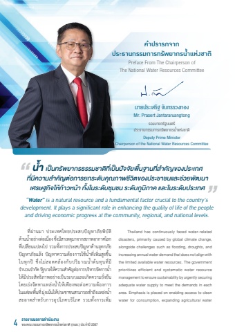 %u0e04%u0e33%u0e33%ufffd%u0e1b%u0e23%u0e32%u0e23%u0e20%u0e08%u0e32%u0e01%u0e1b%u0e23%u0e30%u0e18%u0e32%u0e19%u0e01%u0e23%u0e23%u0e21%u0e01%u0e32%u0e23%u0e17%u0e23%u0e31%u0e31%u0e1e%u0e22%u0e32%u0e01%u0e23%u0e19%u0e49%u0e33%u0e33%ufffd%ufffd%u0e41%u0e2b%u0e48%u0e48%u0e07%u0e0a%u0e32%u0e15%u0e34%u0e34%u0e19%u0e32%u0e22%u0e1b%u0e23%u0e30%u0e40%u0e2a%u0e23%u0e34%u0e34%u0e10 %u0e08%u0e31%u0e31%u0e19%u0e17%u0e23%u0e23%u0e27%u0e07%u0e17%u0e2d%u0e07Mr. Prasert JantararuangtongDeputy Prime MinisterChairperson of the National Water Resources Committee %u0e17%u0e35%u0e48%u0e48%ufffd%u0e1c%u0e48%u0e48%u0e32%u0e19%u0e21%u0e32 %u0e1b%u0e23%u0e30%u0e40%u0e17%u0e28%u0e44%u0e17%u0e22%u0e1b%u0e23%u0e30%u0e2a%u0e1a%u0e1b%u0e31%u0e31%u0e0d%u0e2b%u0e32%u0e20%u0e31%u0e31%u0e22%u0e1e%u0e34%u0e34%u0e1a%u0e31%u0e31%u0e15%u0e34%u0e34%u0e14%u0e49%u0e49%u0e32%u0e19%u0e19%u0e49%u0e49%u0e33%u0e2d%u0e22%u0e48%u0e48%u0e32%u0e07%u0e15%u0e48%u0e48%u0e2d%u0e40%u0e19%u0e37%u0e48%u0e48%ufffd%u0e2d%u0e07 %u0e0b%u0e36%u0e48%u0e48%ufffd%u0e07%u0e21%u0e35%u0e35%u0e2a%u0e32%u0e40%u0e2b%u0e15%u0e38%u0e38%u0e21%u0e32%u0e08%u0e32%u0e01%u0e2a%u0e20%u0e32%u0e1e%u0e2d%u0e32%u0e01%u0e32%u0e28%u0e42%u0e25%u0e01%u0e17%u0e35%u0e48%u0e48%ufffd%u0e40%u0e1b%u0e25%u0e35%u0e48%u0e48%ufffd%u0e22%u0e19%u0e41%u0e1b%u0e25%u0e07%u0e44%u0e1b %u0e23%u0e27%u0e21%u0e17%u0e31%u0e49%u0e49%u0e07%u0e01%u0e32%u0e23%u0e1b%u0e23%u0e30%u0e2a%u0e1a%u0e1b%u0e31%u0e31%u0e0d%u0e2b%u0e32%u0e14%u0e49%u0e49%u0e32%u0e19%u0e2d%u0e38%u0e17%u0e38%u0e01%u0e20%u0e31%u0e31%u0e22%u0e1b%u0e31%u0e31%u0e0d%u0e2b%u0e32%u0e20%u0e31%u0e31%u0e22%u0e41%u0e25%u0e49%u0e49%u0e07 %u0e1b%u0e31%u0e31%u0e0d%u0e2b%u0e32%u0e04%u0e27%u0e32%u0e21%u0e15%u0e49%u0e49%u0e2d%u0e07%u0e01%u0e32%u0e23%u0e43%u0e0a%u0e49%u0e49%u0e19%u0e49%u0e49%u0e33%u0e17%u0e35%u0e48%u0e48%ufffd%u0e40%u0e1e%u0e34%u0e48%u0e48%ufffd%u0e21%u0e2a%u0e39%u0e39%u0e07%u0e02%u0e36%u0e49%u0e49%u0e19%u0e43%u0e19%u0e17%u0e38%u0e38%u0e01%u0e1b%u0e35%u0e35 %u0e0b%u0e36%u0e48%u0e48%ufffd%u0e07%u0e44%u0e21%u0e48%u0e48%u0e2a%u0e2d%u0e14%u0e04%u0e25%u0e49%u0e49%u0e2d%u0e07%u0e01%u0e31%u0e31%u0e1a%u0e1b%u0e23%u0e34%u0e34%u0e21%u0e32%u0e13%u0e19%u0e49%u0e49%u0e33%u0e15%u0e49%u0e49%u0e19%u0e17%u0e38%u0e38%u0e19%u0e17%u0e35%u0e48%u0e48%ufffd%u0e21%u0e35%u0e35%u0e08%u0e33%u0e19%u0e27%u0e19%u0e08%u0e33%u0e01%u0e31%u0e14%u0e31%u0e23%u0e31%u0e31%u0e10%u0e1a%u0e32%u0e25%u0e43%u0e2b%u0e49%u0e49%u0e04%u0e27%u0e32%u0e21%u0e2a%u0e33%u0e04%u0e31%u0e31%u0e0d%u0e15%u0e48%u0e48%u0e2d%u0e01%u0e32%u0e23%u0e1a%u0e23%u0e34%u0e34%u0e2b%u0e32%u0e23%u0e08%u0e31%u0e14%u0e31%u0e01%u0e32%u0e23%u0e19%u0e49%u0e49%u0e33%u0e43%u0e2b%u0e49%u0e49%u0e21%u0e35%u0e35%u0e1b%u0e23%u0e30%u0e2a%u0e34%u0e34%u0e17%u0e18%u0e34%u0e34%u0e20%u0e32%u0e1e%u0e2d%u0e22%u0e48%u0e48%u0e32%u0e07%u0e40%u0e1b%u0e47%u0e47%u0e19%u0e23%u0e30%u0e1a%u0e1a%u0e41%u0e25%u0e30%u0e40%u0e01%u0e34%u0e34%u0e14%u0e04%u0e27%u0e32%u0e21%u0e22%u0e31%u0e48%u0e48%ufffd%u0e07%u0e22%u0e37%u0e37%u0e19 %u0e42%u0e14%u0e22%u0e40%u0e23%u0e48%u0e48%u0e07%u0e08%u0e31%u0e31%u0e14%u0e2b%u0e32%u0e41%u0e2b%u0e25%u0e48%u0e48%u0e07%u0e19%u0e49%u0e49%u0e33%u0e43%u0e2b%u0e49%u0e49%u0e40%u0e1e%u0e35%u0e35%u0e22%u0e07%u0e1e%u0e2d%u0e15%u0e48%u0e48%u0e2d%u0e04%u0e27%u0e32%u0e21%u0e15%u0e49%u0e49%u0e2d%u0e07%u0e01%u0e32%u0e23%u0e43%u0e19%u0e41%u0e15%u0e48%u0e48%u0e25%u0e30%u0e1e%u0e37%u0e49%u0e49%u0e19%u0e17%u0e35%u0e48%u0e48%ufffd %u0e21%u0e38%u0e48%u0e48%u0e07%u0e40%u0e21%u0e38%u0e48%u0e48%u0e19%u0e49%u0e49%u0e19%u0e43%u0e2b%u0e49%u0e49%u0e1b%u0e23%u0e30%u0e0a%u0e32%u0e0a%u0e19%u0e2a%u0e32%u0e21%u0e32%u0e23%u0e16%u0e40%u0e02%u0e49%u0e49%u0e32%u0e16%u0e36%u0e36%u0e07%u0e41%u0e2b%u0e25%u0e48%u0e48%u0e07%u0e19%u0e49%u0e49%u0e33%u0e2a%u0e30%u0e2d%u0e32%u0e14%u0e2a%u0e33%u0e2b%u0e23%u0e31%u0e31%u0e1a%u0e01%u0e32%u0e23%u0e2d%u0e38%u0e38%u0e1b%u0e42%u0e20%u0e04%u0e1a%u0e23%u0e34%u0e34%u0e42%u0e20%u0e04 %u0e23%u0e27%u0e21%u0e17%u0e31%u0e49%u0e49%u0e07%u0e01%u0e32%u0e23%u0e40%u0e1e%u0e34%u0e48%u0e48%ufffd%u0e21Thailand has continuously faced water-relateddisasters, primarily caused by global climate change, alongside challenges such as flooding, droughts, and increasing annual water demand that does not align with the limited available water resources. The government prioritizes efficient and systematic water resource management to ensure sustainability by urgently securingadequate water supply to meet the demands in each area. Emphasis is placed on enabling access to clean water for consumption, expanding agricultural water %u0e19%u0e49%u0e49%u0e33 %u0e40%u0e1b%u0e47%u0e47%u0e19%u0e17%u0e23%u0e31%u0e31%u0e1e%u0e22%u0e32%u0e01%u0e23%u0e18%u0e23%u0e23%u0e21%u0e0a%u0e32%u0e15%u0e34%u0e34%u0e17%u0e35%u0e48%u0e48%ufffd%u0e40%u0e1b%u0e47%u0e47%u0e19%u0e1b%u0e31%u0e31%u0e08%u0e08%u0e31%u0e31%u0e22%u0e1e%u0e37%u0e49%u0e49%ufffd%u0e19%u0e10%u0e32%u0e19%u0e17%u0e35%u0e48%u0e48%ufffd%u0e2a%u0e33%u0e04%u0e31%u0e31%u0e0d%u0e02%u0e2d%u0e07%u0e1b%u0e23%u0e30%u0e40%u0e17%u0e28%u0e17%u0e35%u0e48%u0e48%ufffd%u0e21%u0e35%u0e35%u0e04%u0e27%u0e32%u0e21%u0e2a%u0e33%u0e04%u0e31%u0e31%u0e0d%u0e15%u0e48%u0e48%u0e2d%u0e01%u0e32%u0e23%u0e22%u0e01%u0e23%u0e30%u0e14%u0e31%u0e31%u0e1a%u0e04%u0e38%u0e38%u0e13%u0e20%u0e32%u0e1e%u0e0a%u0e35%u0e35%u0e27%u0e34%u0e34%u0e15%u0e02%u0e2d%u0e07%u0e1b%u0e23%u0e30%u0e0a%u0e32%u0e0a%u0e19%u0e41%u0e25%u0e30%u0e0a%u0e48%u0e48%u0e27%u0e22%u0e1e%u0e31%u0e31%u0e12%u0e19%u0e32%u0e40%u0e28%u0e23%u0e29%u0e10%u0e01%u0e34%u0e34%u0e08%u0e43%u0e2b%u0e49%u0e49%u0e01%u0e49%u0e49%u0e32%u0e27%u0e2b%u0e19%u0e49%u0e49%u0e32 %u0e17%u0e31%u0e49%u0e49%ufffd%u0e07%u0e43%u0e19%u0e23%u0e30%u0e14%u0e31%u0e31%u0e1a%u0e0a%u0e38%u0e38%u0e21%u0e0a%u0e19 %u0e23%u0e30%u0e14%u0e31%u0e31%u0e1a%u0e20%u0e39%u0e39%u0e21%u0e34%u0e34%u0e20%u0e32%u0e04 %u0e41%u0e25%u0e30%u0e43%u0e19%u0e23%u0e30%u0e14%u0e31%u0e31%u0e1a%u0e1b%u0e23%u0e30%u0e40%u0e17%u0e28%u201d%u201d%u201cWater%u201d is a natural resource and a fundamental factor crucial to the country%u2019s development. It plays a significant role in enhancing the quality of life of the people and driving economic p