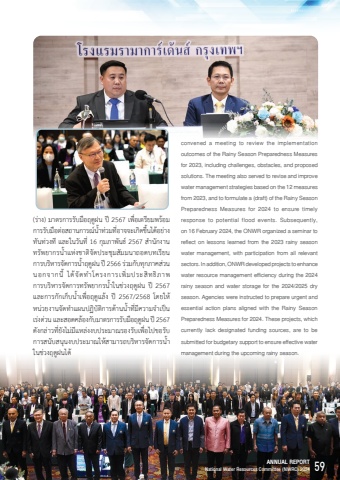 (%u0e23%u0e48%u0e48%u0e32%u0e07)%u0e21%u0e32%u0e15%u0e23%u0e01%u0e32%u0e23%u0e23%u0e31%u0e31%u0e1a%u0e21%u0e37%u0e37%u0e2d%u0e24%u0e14%u0e39%u0e39%u0e1d%u0e19 %u0e1b%u0e35%u0e352567%u0e40%u0e1e%u0e37%u0e48%u0e48%ufffd%u0e2d%u0e40%u0e15%u0e23%u0e35%u0e35%u0e22%u0e21%u0e1e%u0e23%u0e49%u0e49%u0e2d%u0e21%u0e01%u0e32%u0e23%u0e23%u0e31%u0e31%u0e1a%u0e21%u0e37%u0e37%u0e2d%u0e15%u0e48%u0e48%u0e2d%u0e2a%u0e16%u0e32%u0e19%u0e01%u0e32%u0e23%u0e13%u0e4c%u0e19%u0e49%u0e4c%u0e49%u0e33%u0e17%u0e48%u0e48%u0e27%u0e21%u0e17%u0e35%u0e48%u0e48%ufffd%u0e2d%u0e32%u0e08%u0e08%u0e30%u0e40%u0e01%u0e34%u0e34%u0e14%u0e02%u0e36%u0e49%u0e49%u0e19%u0e44%u0e14%u0e49%u0e49%u0e2d%u0e22%u0e48%u0e48%u0e32%u0e07%u0e17%u0e31%u0e31%u0e19%u0e17%u0e48%u0e48%u0e27%u0e07%u0e17%u0e35%u0e35%u0e41%u0e25%u0e30%u0e43%u0e19%u0e27%u0e31%u0e31%u0e19%u0e17%u0e35%u0e48%u0e4816 %u0e01%u0e38%u0e38%u0e21%u0e20%u0e32%u0e1e%u0e31%u0e31%u0e19%u0e18%u0e4c%u0e4c2567%u0e2a%u0e33%u0e19%u0e31%u0e31%u0e01%u0e07%u0e32%u0e19%u0e17%u0e23%u0e31%u0e31%u0e1e%u0e22%u0e32%u0e01%u0e23%u0e19%u0e49%u0e49%u0e33%u0e41%u0e2b%u0e48%u0e48%u0e07%u0e0a%u0e32%u0e15%u0e34%u0e34%u0e08%u0e31%u0e31%u0e14%u0e1b%u0e23%u0e30%u0e0a%u0e38%u0e38%u0e21%u0e2a%u0e31%u0e31%u0e21%u0e21%u0e19%u0e32%u0e16%u0e2d%u0e14%u0e1a%u0e17%u0e40%u0e23%u0e35%u0e35%u0e22%u0e19%u0e01%u0e32%u0e23%u0e1a%u0e23%u0e34%u0e34%u0e2b%u0e32%u0e23%u0e08%u0e31%u0e31%u0e14%u0e01%u0e32%u0e23%u0e19%u0e49%u0e49%u0e33%u0e24%u0e14%u0e39%u0e39%u0e1d%u0e19 %u0e1b%u0e35%u0e352566 %u0e23%u0e48%u0e48%u0e27%u0e21%u0e01%u0e31%u0e1a%u0e17%u0e38%u0e31%u0e38%u0e01%u0e20%u0e32%u0e04%u0e2a%u0e48%u0e48%u0e27%u0e19%u0e19%u0e2d%u0e01%u0e08%u0e32%u0e01%u0e19%u0e35%u0e49%u0e49 %u0e44%u0e14%u0e49%u0e49%u0e08%u0e31%u0e31%u0e14%u0e17%u0e33%u0e42%u0e04%u0e23%u0e07%u0e01%u0e32%u0e23%u0e40%u0e1e%u0e34%u0e48%u0e48%ufffd%u0e21%u0e1b%u0e23%u0e30%u0e2a%u0e34%u0e34%u0e17%u0e18%u0e34%u0e34%u0e20%u0e32%u0e1e%u0e01%u0e32%u0e23%u0e1a%u0e23%u0e34%u0e34%u0e2b%u0e32%u0e23%u0e08%u0e31%u0e31%u0e14%u0e01%u0e32%u0e23%u0e17%u0e23%u0e31%u0e31%u0e1e%u0e22%u0e32%u0e01%u0e23%u0e19%u0e49%u0e49%u0e33%u0e43%u0e19%u0e0a%u0e48%u0e48%u0e27%u0e07%u0e24%u0e14%u0e39%u0e39%u0e1d%u0e19 %u0e1b%u0e35%u0e352567%u0e41%u0e25%u0e30%u0e01%u0e32%u0e23%u0e01%u0e31%u0e31%u0e01%u0e40%u0e01%u0e47%u0e47%u0e1a%u0e19%u0e49%u0e49%u0e33%u0e40%u0e1e%u0e37%u0e48%u0e48%ufffd%u0e2d%u0e24%u0e14%u0e39%u0e39%u0e41%u0e25%u0e49%u0e49%u0e07 %u0e1b%u0e35%u0e352567/2568%u0e42%u0e14%u0e22%u0e43%u0e2b%u0e49%u0e49%u0e2b%u0e19%u0e48%u0e48%u0e27%u0e22%u0e07%u0e32%u0e19%u0e08%u0e31%u0e31%u0e14%u0e17%u0e33%u0e41%u0e1c%u0e19%u0e1b%u0e0f%u0e34%u0e34%u0e1a%u0e31%u0e31%u0e15%u0e34%u0e34%u0e01%u0e32%u0e23%u0e14%u0e49%u0e49%u0e32%u0e19%u0e19%u0e49%u0e49%u0e33%u0e17%u0e35%u0e48%u0e48%u0e21%u0e35%u0e35%u0e04%u0e27%u0e32%u0e21%u0e08%u0e33%u0e40%u0e1b%u0e47%u0e47%u0e19%u0e40%u0e23%u0e48%u0e48%u0e07%u0e14%u0e48%u0e48%u0e27%u0e19%u0e41%u0e25%u0e30%u0e2a%u0e2d%u0e14%u0e04%u0e25%u0e49%u0e49%u0e2d%u0e07%u0e01%u0e31%u0e1a%u0e31%u0e21%u0e32%u0e15%u0e23%u0e01%u0e32%u0e23%u0e23%u0e31%u0e31%u0e1a%u0e21%u0e37%u0e37%u0e2d%u0e24%u0e14%u0e39%u0e39%u0e1d%u0e19 %u0e1b%u0e35%u0e352567%u0e14%u0e31%u0e31%u0e07%u0e01%u0e25%u0e48%u0e48%u0e32%u0e27%u0e17%u0e35%u0e48%u0e48%u0e22%u0e31%u0e31%u0e07%u0e44%u0e21%u0e48%u0e21%u0e35%u0e35%u0e41%u0e2b%u0e25%u0e48%u0e48%u0e07%u0e07%u0e1a%u0e1b%u0e23%u0e30%u0e21%u0e32%u0e13%u0e23%u0e2d%u0e07%u0e23%u0e31%u0e31%u0e1a%u0e40%u0e1e%u0e37%u0e48%u0e48%ufffd%u0e2d%u0e44%u0e1b%u0e02%u0e2d%u0e23%u0e31%u0e31%u0e1a%u0e01%u0e32%u0e23%u0e2a%u0e19%u0e31%u0e31%u0e1a%u0e2a%u0e19%u0e38%u0e38%u0e19%u0e07%u0e1a%u0e1b%u0e23%u0e30%u0e21%u0e32%u0e13%u0e43%u0e2b%u0e49%u0e49%u0e2a%u0e32%u0e21%u0e32%u0e23%u0e16%u0e1a%u0e23%u0e34%u0e34%u0e2b%u0e32%u0e23%u0e08%u0e31%u0e31%u0e14%u0e01%u0e32%u0e23%u0e19%u0e49%u0e49%u0e33%u0e43%u0e19%u0e0a%u0e48%u0e48%u0e27%u0e07%u0e24%u0e14%u0e39%u0e39%u0e1d%u0e19%u0e44%u0e14%u0e49%u0e49convened a meeting to review the implementation outcomes of the Rainy Season Preparedness Measures for 2023, including challenges, obstacles, and proposed solutions. The meeting also served to revise and improve water management strategies based on the 12 measures from 2023, and to formulate a (draft) of the Rainy Season Preparedness Measures for 2024 to ensure timely response to potential flood events. Subsequently, on 16 February 2024, the ONWR organized a seminar to reflect on lessons learned from the 2023 rainy season water management, with participation from all relevant sectors. In addition, ONWR developed projects to enhance water resource management efficiency during the 2024 rainy season and water storage for the 2024/2025 dry season. Agencies were instructed to prepare urgent and essential action plans aligned with the Rainy Season Preparedness Measures for 2024. These projects, which currently lack designated funding sources, are to be submitted for budgetary support to ensure effective water management during the upcoming rainy season.59ANNUAL REPORTNational Water Resources Committee (NWRC) 2024