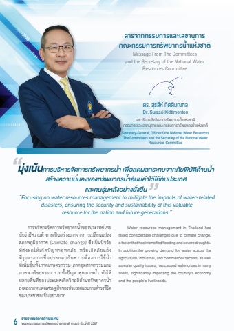 %u0e2a%u0e32%u0e23%u0e08%u0e32%u0e01%u0e01%u0e23%u0e23%u0e21%u0e01%u0e32%u0e23%u0e41%u0e25%u0e30%u0e40%u0e25%u0e02%u0e32%u0e19%u0e38%u0e38%u0e01%u0e32%u0e23%u0e04%u0e13%u0e30%u0e01%u0e23%u0e23%u0e21%u0e01%u0e32%u0e23%u0e17%u0e23%u0e31%u0e31%u0e1e%u0e22%u0e32%u0e01%u0e23%u0e19%u0e49%u0e33%u0e33%ufffd%ufffd%u0e41%u0e2b%u0e48%u0e48%u0e07%u0e0a%u0e32%u0e15%u0e34%u0e34%u0e01%u0e32%u0e23%u0e1a%u0e23%u0e34%u0e34%u0e2b%u0e32%u0e23%u0e08%u0e31%u0e31%u0e14%u0e01%u0e32%u0e23%u0e17%u0e23%u0e31%u0e31%u0e1e%u0e22%u0e32%u0e01%u0e23%u0e19%u0e49%u0e49%u0e33%u0e02%u0e2d%u0e07%u0e1b%u0e23%u0e30%u0e40%u0e17%u0e28%u0e44%u0e17%u0e22 %u0e19%u0e31%u0e31%u0e1a%u0e27%u0e48%u0e48%u0e32%u0e21%u0e35%u0e35%u0e04%u0e27%u0e32%u0e21%u0e17%u0e49%u0e49%u0e32%u0e17%u0e32%u0e22%u0e40%u0e1b%u0e47%u0e47%u0e19%u0e2d%u0e22%u0e48%u0e48%u0e32%u0e07%u0e21%u0e32%u0e01%u0e08%u0e32%u0e01%u0e01%u0e32%u0e23%u0e40%u0e1b%u0e25%u0e35%u0e48%u0e48%ufffd%u0e22%u0e19%u0e41%u0e1b%u0e25%u0e07%u0e2a%u0e20%u0e32%u0e1e%u0e20%u0e39%u0e39%u0e21%u0e34%u0e34%u0e2d%u0e32%u0e01%u0e32%u0e28 (Climate change) %u0e0b%u0e36%u0e48%u0e48%ufffd%u0e07%u0e40%u0e1b%u0e47%u0e47%u0e19%u0e1b%u0e31%u0e31%u0e08%u0e08%u0e31%u0e31%u0e22%u0e17%u0e35%u0e48%u0e48%ufffd%u0e2a%u0e48%u0e48%u0e07%u0e1c%u0e25%u0e43%u0e2b%u0e49%u0e49%u0e40%u0e01%u0e34%u0e34%u0e14%u0e1b%u0e31%u0e31%u0e0d%u0e2b%u0e32%u0e2d%u0e38%u0e38%u0e17%u0e01%u0e20%u0e31%u0e31%u0e22 %u0e2b%u0e23%u0e37%u0e37%u0e2d%u0e40%u0e01%u0e34%u0e34%u0e14%u0e20%u0e31%u0e31%u0e22%u0e41%u0e25%u0e49%u0e49%u0e07%u0e17%u0e35%u0e48%u0e48%ufffd%u0e23%u0e38%u0e38%u0e19%u0e41%u0e23%u0e07%u0e21%u0e32%u0e01%u0e02%u0e36%u0e49%u0e49%u0e19%u0e1b%u0e23%u0e30%u0e01%u0e2d%u0e1a%u0e01%u0e31%u0e31%u0e1a%u0e04%u0e27%u0e32%u0e21%u0e15%u0e49%u0e49%u0e2d%u0e07%u0e01%u0e32%u0e23%u0e43%u0e0a%u0e49%u0e49%u0e19%u0e49%u0e49%u0e33%u0e17%u0e35%u0e48%u0e48%ufffd%u0e40%u0e1e%u0e34%u0e48%u0e48%ufffd%u0e21%u0e02%u0e36%u0e49%u0e49%u0e19%u0e17%u0e31%u0e49%u0e49%u0e07%u0e20%u0e32%u0e04%u0e40%u0e01%u0e29%u0e15%u0e23%u0e01%u0e23%u0e23%u0e21%u0e20%u0e32%u0e04%u0e2d%u0e38%u0e38%u0e15%u0e2a%u0e32%u0e2b%u0e01%u0e23%u0e23%u0e21%u0e41%u0e25%u0e30%u0e20%u0e32%u0e04%u0e1e%u0e32%u0e13%u0e34%u0e34%u0e0a%u0e22%u0e01%u0e23%u0e23%u0e21 %u0e23%u0e27%u0e21%u0e17%u0e31%u0e49%u0e49%u0e07%u0e1b%u0e31%u0e31%u0e0d%u0e2b%u0e32%u0e04%u0e38%u0e38%u0e13%u0e20%u0e32%u0e1e%u0e19%u0e49%u0e49%u0e33 %u0e17%u0e33%u0e43%u0e2b%u0e49%u0e49%u0e2b%u0e25%u0e32%u0e22%u0e1e%u0e37%u0e49%u0e49%u0e19%u0e17%u0e35%u0e48%u0e48%ufffd%u0e02%u0e2d%u0e07%u0e1b%u0e23%u0e30%u0e40%u0e17%u0e28%u0e40%u0e01%u0e34%u0e34%u0e14%u0e27%u0e34%u0e34%u0e01%u0e24%u0e15%u0e34%u0e34%u0e14%u0e49%u0e49%u0e32%u0e19%u0e17%u0e23%u0e31%u0e31%u0e1e%u0e22%u0e32%u0e01%u0e23%u0e19%u0e49%u0e49%u0e33%u0e2a%u0e48%u0e07%u0e48%u0e1c%u0e25%u0e01%u0e23%u0e30%u0e17%u0e1a%u0e15%u0e48%u0e48%u0e2d%u0e40%u0e28%u0e23%u0e29%u0e10%u0e01%u0e34%u0e34%u0e08%u0e02%u0e2d%u0e07%u0e1b%u0e23%u0e30%u0e40%u0e17%u0e28%u0e41%u0e25%u0e30%u0e01%u0e32%u0e23%u0e14%u0e33%u0e23%u0e07%u0e0a%u0e35%u0e35%u0e27%u0e34%u0e15%u0e34%u0e02%u0e2d%u0e07%u0e1b%u0e23%u0e30%u0e0a%u0e32%u0e0a%u0e19%u0e40%u0e1b%u0e47%u0e47%u0e19%u0e2d%u0e22%u0e48%u0e48%u0e32%u0e07%u0e21%u0e32%u0e01Water resources management in Thailand hasfaced considerable challenges due to climate change, a factor that has intensified flooding and severe droughts. In addition,the growing demand for water across the agricultural, industrial, and commercial sectors, as well as water quality issues, has caused water crises in many areas, significantly impacting the country%u2019s economy and the people%u2019s livelihoods.%u0e21%u0e38%u0e48%u0e07%u0e40%u0e19%u0e19%u0e49%u0e01%u0e32%u0e23%u0e1a%u0e23%u0e34%u0e2b%u0e32%u0e23%u0e08%u0e31%u0e14%u0e01%u0e32%u0e23%u0e17%u0e23%u0e31%u0e1e%u0e22%u0e32%u0e01%u0e23%u0e19%u0e49%u0e33 %u0e40%u0e1e%u0e37%u0e48%u0e2d%u0e25%u0e14%u0e1c%u0e25%u0e01%u0e23%u0e30%u0e17%u0e1a%u0e08%u0e32%u0e01%u0e20%u0e31%u0e22%u0e1e%u0e34%u0e1a%u0e31%u0e15%u0e34%u0e14%u0e49%u0e32%u0e19%u0e19%u0e49%u0e33%u0e2a%u0e23%u0e49%u0e49%u0e32%u0e07%u0e04%u0e27%u0e32%u0e21%u0e21%u0e31%u0e48%u0e48%ufffd%u0e19%u0e04%u0e07%u0e02%u0e2d%u0e07%u0e17%u0e23%u0e31%u0e31%u0e1e%u0e22%u0e32%u0e01%u0e23%u0e19%u0e49%u0e49%u0e33%u0e2d%u0e31%u0e31%u0e19%u0e21%u0e35%u0e35%u0e04%u0e48%u0e48%u0e32%u0e44%u0e27%u0e49%u0e49%u0e43%u0e2b%u0e49%u0e49%u0e01%u0e31%u0e31%u0e1a%u0e1b%u0e23%u0e30%u0e40%u0e17%u0e28%u0e41%u0e25%u0e30%u0e04%u0e19%u0e23%u0e38%u0e48%u0e48%u0e19%u0e2b%u0e25%u0e31%u0e31%u0e07%u0e2d%u0e22%u0e48%u0e48%u0e32%u0e07%u0e22%u0e31%u0e48%u0e48%ufffd%u0e07%u0e22%u0e37%u0e37%u0e19%u201cFocusing on water resources management to mitigate the impacts of water-related disasters, ensuring the security and sustainability of this valuable resource for the nation and future generations.%u201d%u201d%u201d%u0e14%u0e23. %u0e2a%u0e38%u0e38%u0e23%u0e2a%u0e35%u0e35%u0e2b%u0e4c%u0e4c %u0e01%u0e34%u0e34%u0e15%u0e15%u0e34%u0e34%u0e21%u0e13%u0e11%u0e25%u0e40%u0e25%u0e02%u0e32%u0e18%u0e34%u0e34%u0e01%u0e32%u0e23%u0e2a%u0e33%u0e19%u0e31%u0e31%u0e01%u0e07%u0e32%u0e19%u0e17%u0e23%u0e31%u0e31%u0e1e%u0e22%u0e32%u0e01%u0e23%u0e19%u0e49%u0e49%u0e33%u0e41%u0e2b%u0e48%u0e48%u0e07%u0e0a%u0e32%u0e15%u0e34%u0e34%u0e01%u0e23%u0e23%u0e21%u0e01%u0e32%u0e23%u0e41%u0e25%u0e30%u0e40%u0e25%u0e02%u0e32%u0e19%u0e38%u0e38%u0e01%u0e32%u0e23%u0e04%u0e13%u0e30%u0e01%u0e23%u0e23%u0e21%u0e01%u0e32%u0e23%u0e17%u0e23%u0e31%u0e31%u0e1e%u0e22%u0e32%u0e01%u0e23%u0e19%u0e49%u0e49%u0e33%u0e41%u0e2b%u0e48%u0e48%u0e07%u0e0a%u0e32%u0e15%u0e34%u0e34Dr. Surasri KidtimontonSecretary-General, Office of the National Water ResourcesThe Committees and the Secretary of the National Water Resources CommitteeMessage From The Committees and the Secretary of the National Water Resources Committee%u0e23%u0e32%u0e22%u0e07%u0e32%u0e19%u0e1c%u0e25%u0e01%u0e32%u0e23%u0e14%u0e33%u0e40%u0e19%u0e34%u0e34%u0e19%u0e07%u0e32%u0e196%u0e02%u0e2d%u0e07%u0e04%u0e13%u0e30%u0e01%u0e23%u0e23%u0e21%u0e01%u0e32%u0e23%u0e17%u0e23%u0e31%u0e31%u0e1e%u0e22%u0e32%u0e01%u0e23%u0e19%u0e49%u0e49%u0e33%u0e41%u0e2b%u0e48%u0e