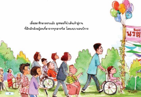 เมื่อสมาชิกมาครบแล้ว ลุงหมอก็น�เดินเข้าสู่งาน ที่คึกคักด้วยผู้คนที่มาจากทุกสารทิศ โดยเฉพาะคนพิการ 10