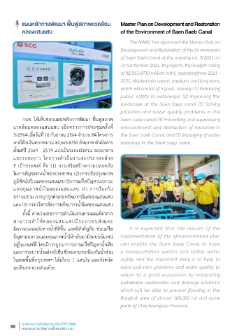 3/2564 เม�อวิน้ำท 10 กน้ำยายน้ำ 2564 จาน้ำวิน้ำ 84 โครงการ the Saen Saeb Canal; and (5) Managing of water
