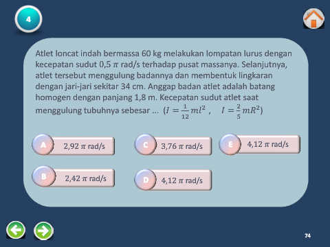 homogen dengan panjang 1,8 m. Kecepatan sudut atlet saat